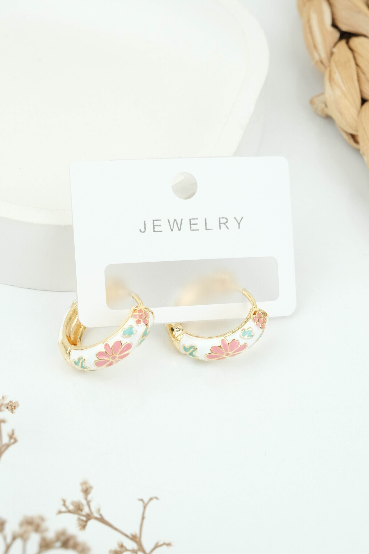 MİNELİ ÇİÇEKLİ RENKLİ KÜPE ÇELİK RENK ATMAZ GARANTİLİ
