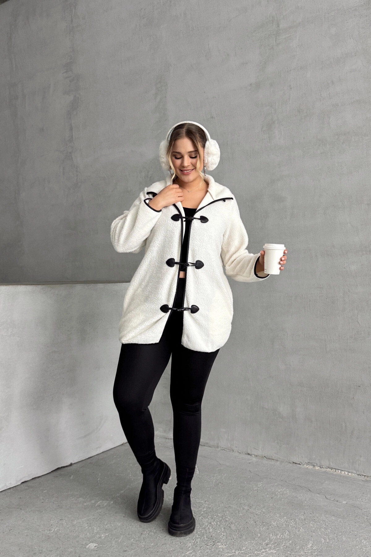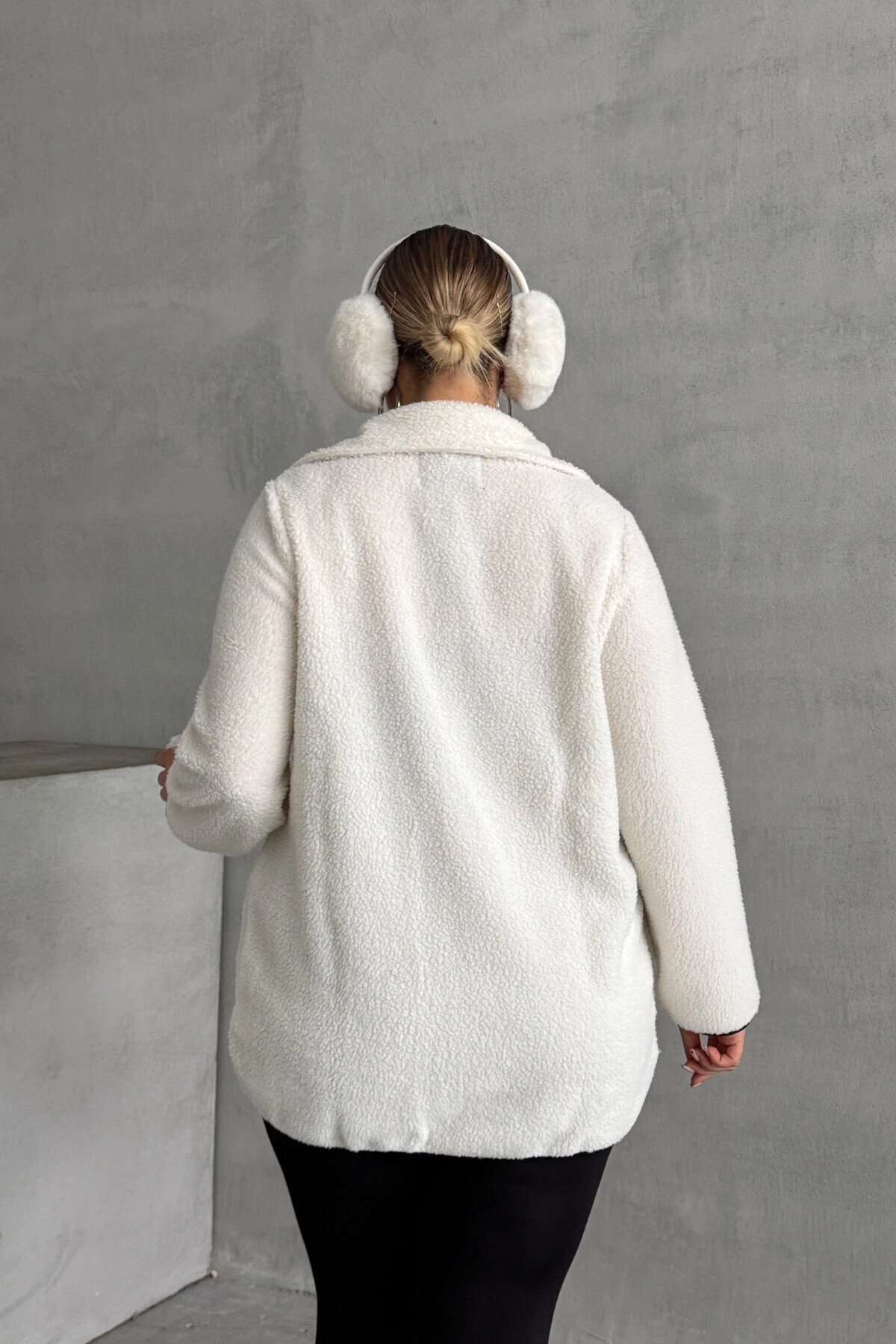 Büyük Beden Önü Kapamalı Cepli Uzun Kollu Peluş Mont 301816