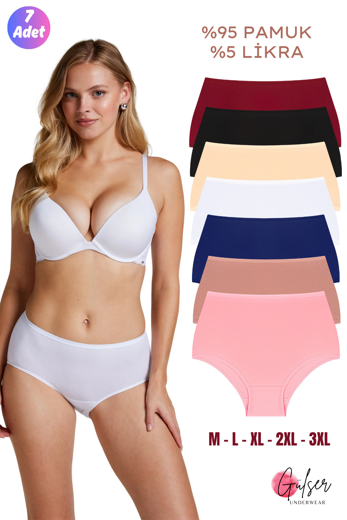 Kadın Yüksek Bel Bato Pamuklu Toparlayıcı 7'li Slip Külot** %95 pamuk ve %5 elastan karışımı ile üretilmiş bu kadın yüksek bel bato pamuklu toparlayıcı slip külot, günlük kullanım için mükemmel bir tercihtir.