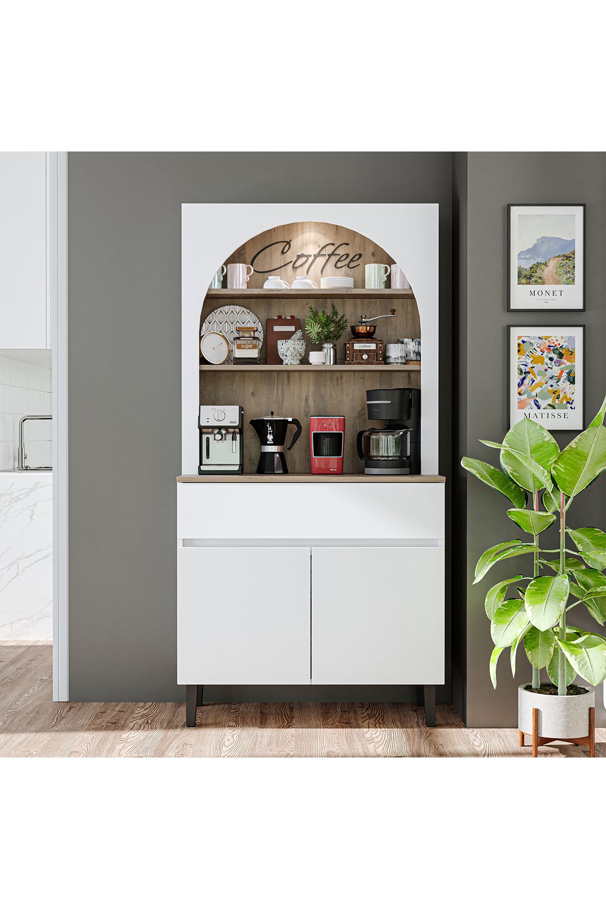 Venedik Kahve Köşesi, Çok Amaçlı Dolap, 2 Kapaklı 1 Çekmeceli Kiler Dolabı, Mutfak Dolabı