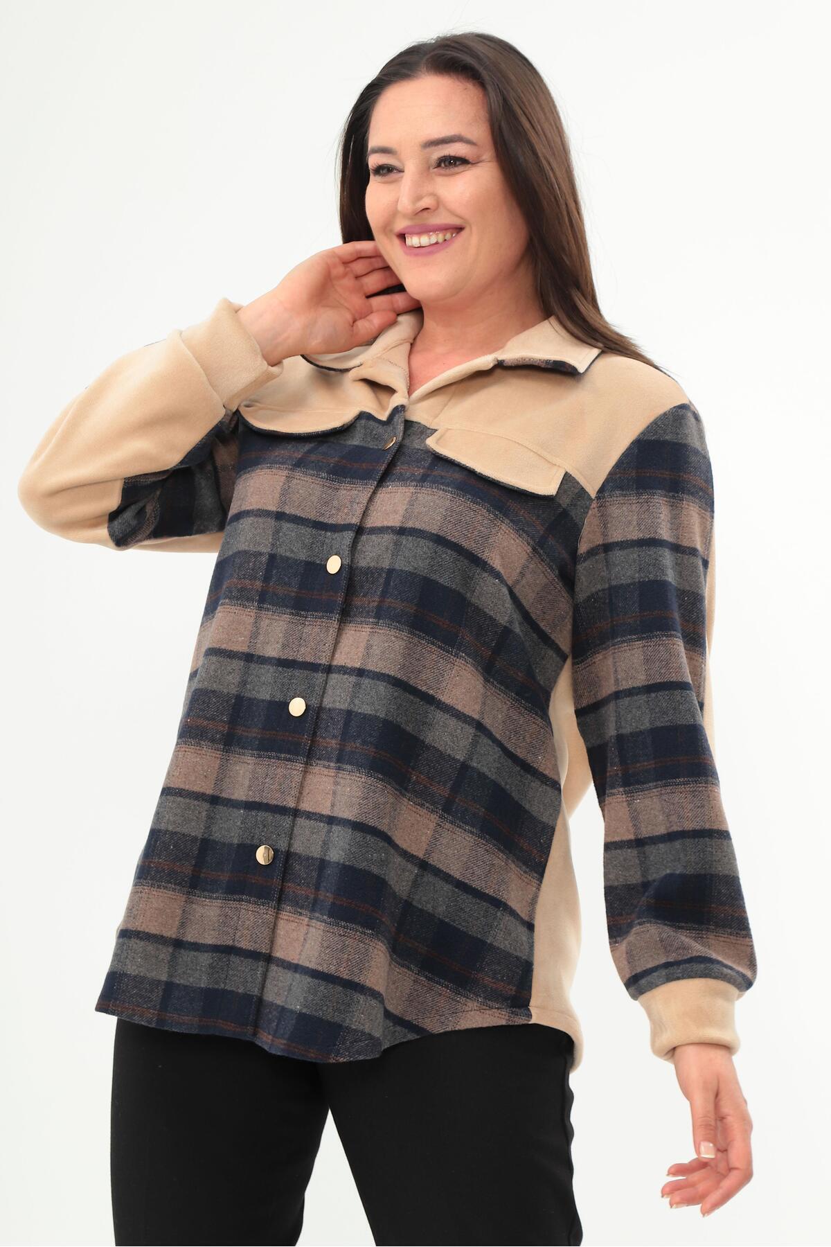 Trend42plus Büyük Beden Ekose Desen Oduncu Siyah Gömlek