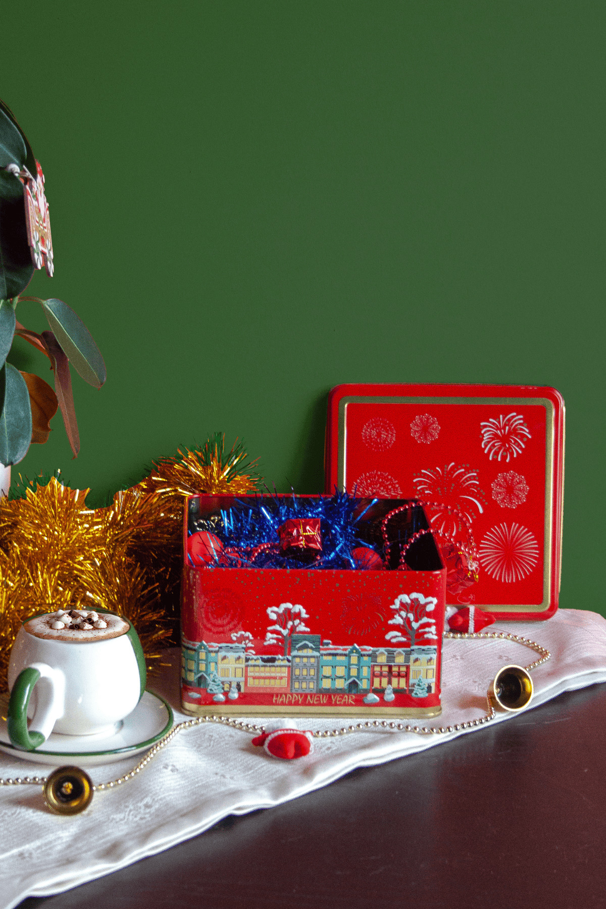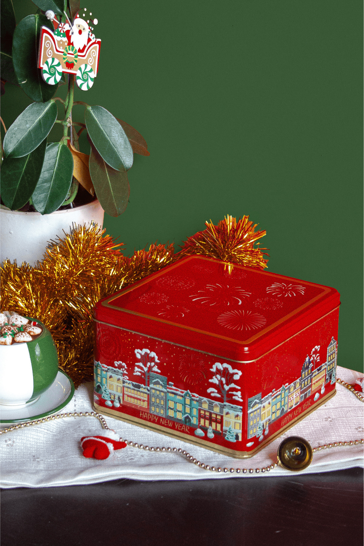 Sarkap Home New Year City Kabartmalı Köşeli Metal Saklama Kutusu.
