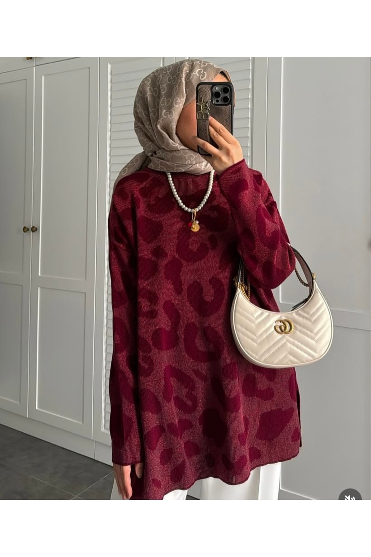 Leopar Desen Simli Soğuk İplik İnce Premium Tunik