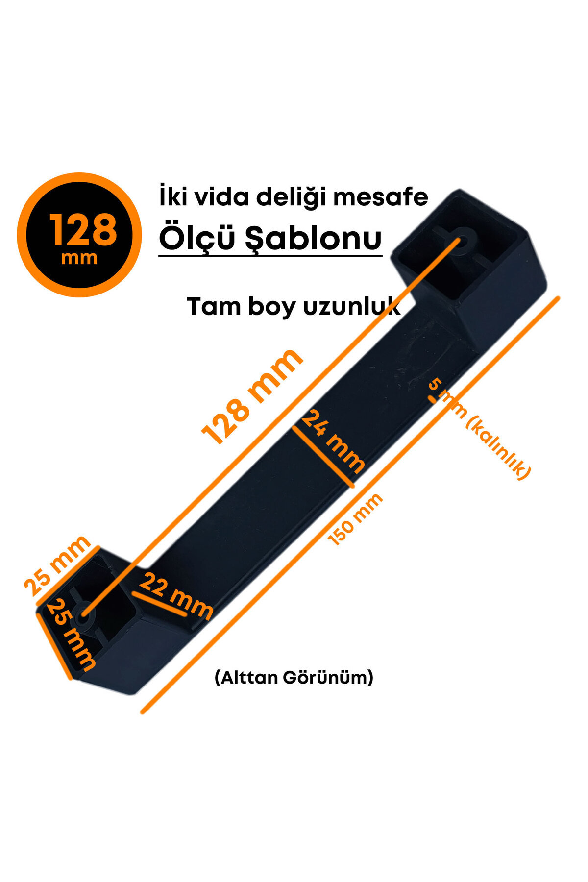 128 mm Dolap Çekmece Kulpu Yassı Kalın Köprü Kulp 1 Adet Mobilya Kulpları Siyah (VİDA DAHİL)