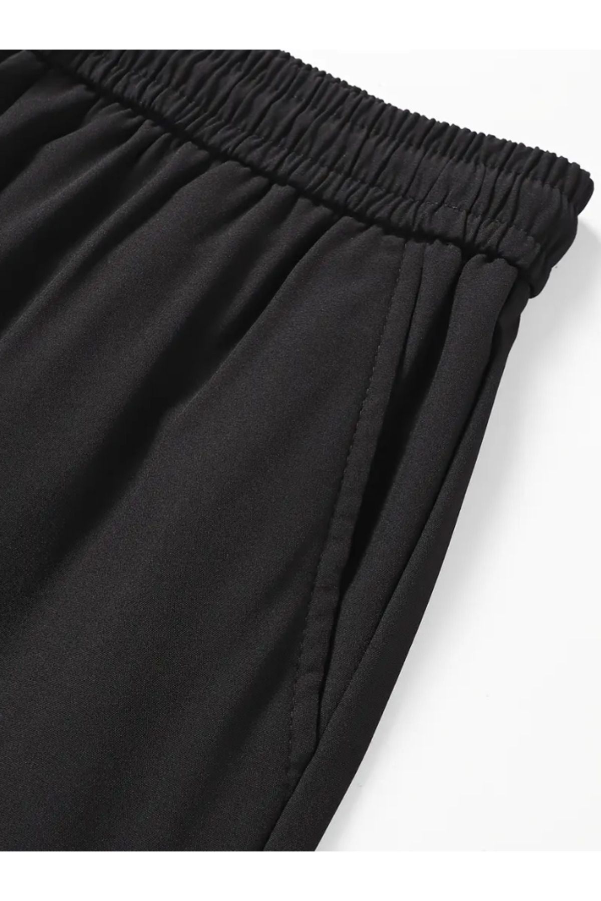 - Rahat ve şık bir görünüm için ideal, siyah renkteki baggy erkek eşofman altı.