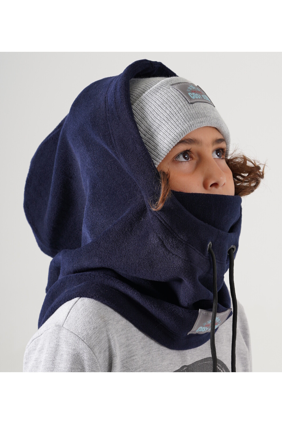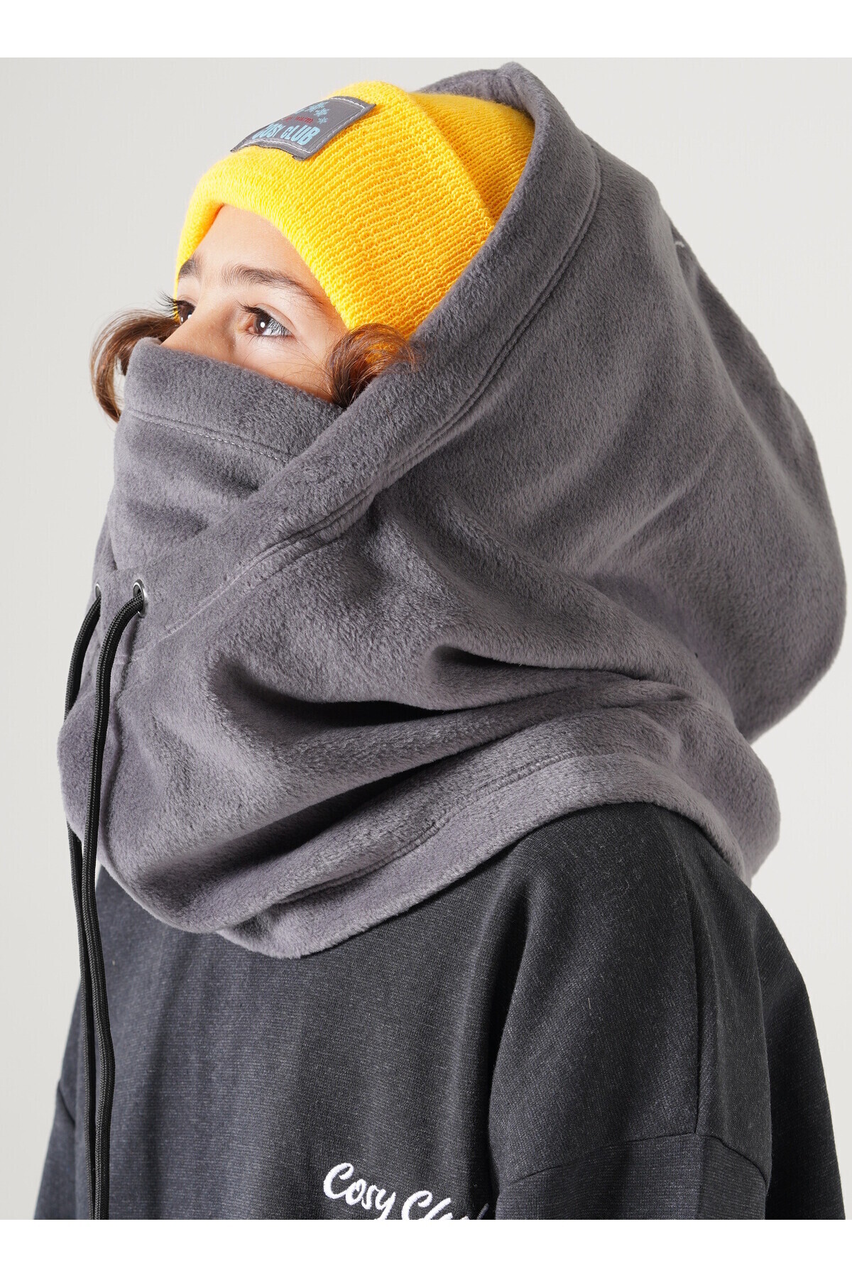 sıkıldığınızda, ortam sıcak geldiğinde şapkayı aşağı indirerek boyunluk veya atkı gibi kullanılabilir.