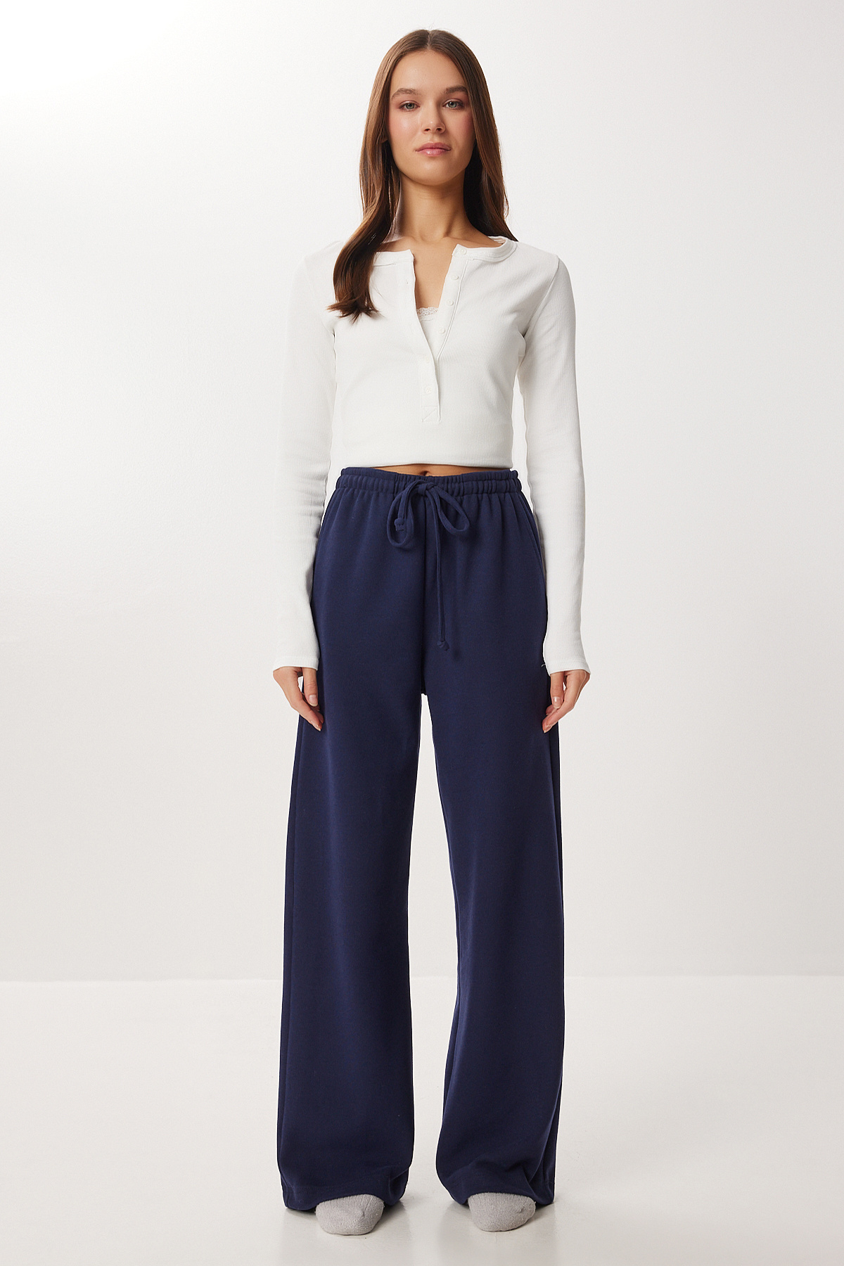 Elastik bağlamalı bel, esnek yapılı, yumoş, bol örme pantolon İçerik: %72 Polyester %25 Viskon %3 Elastan Ürün boyu: 103 cm Bel: 36 Cm 30° makinede yıkanabilir.