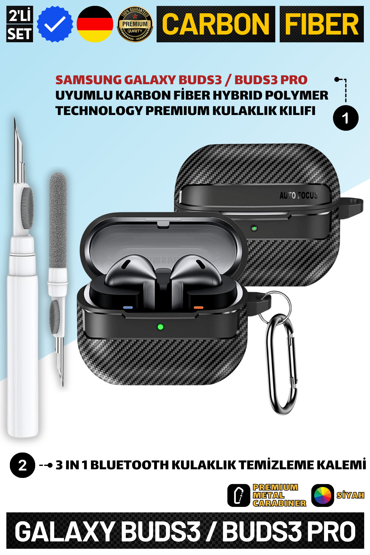1 ADET | SAMSUNG GALAXY BUDS3 VE BUDS3 PRO UYUMLU SİYAH KARBON FİBER HYBRID POLYMER TECHNOLOGY PREMIUM KULAKLIK KILIFI
