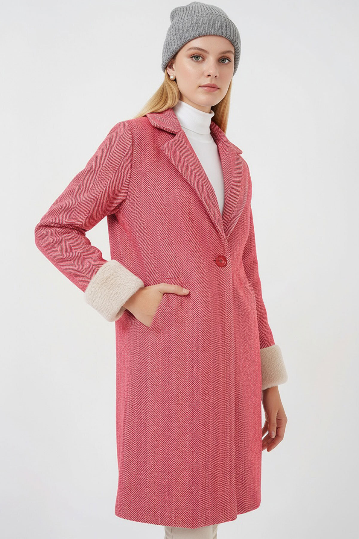 Kollari Tüylü Balik Sirti Kase Kaban Model Bilgileri Bedeni : 38 Ürün Boyu:92cm Kol Boyu:57cm Manken Ölçüsü : Boy:176 Gögüs:90 Bel:63 Basen:94