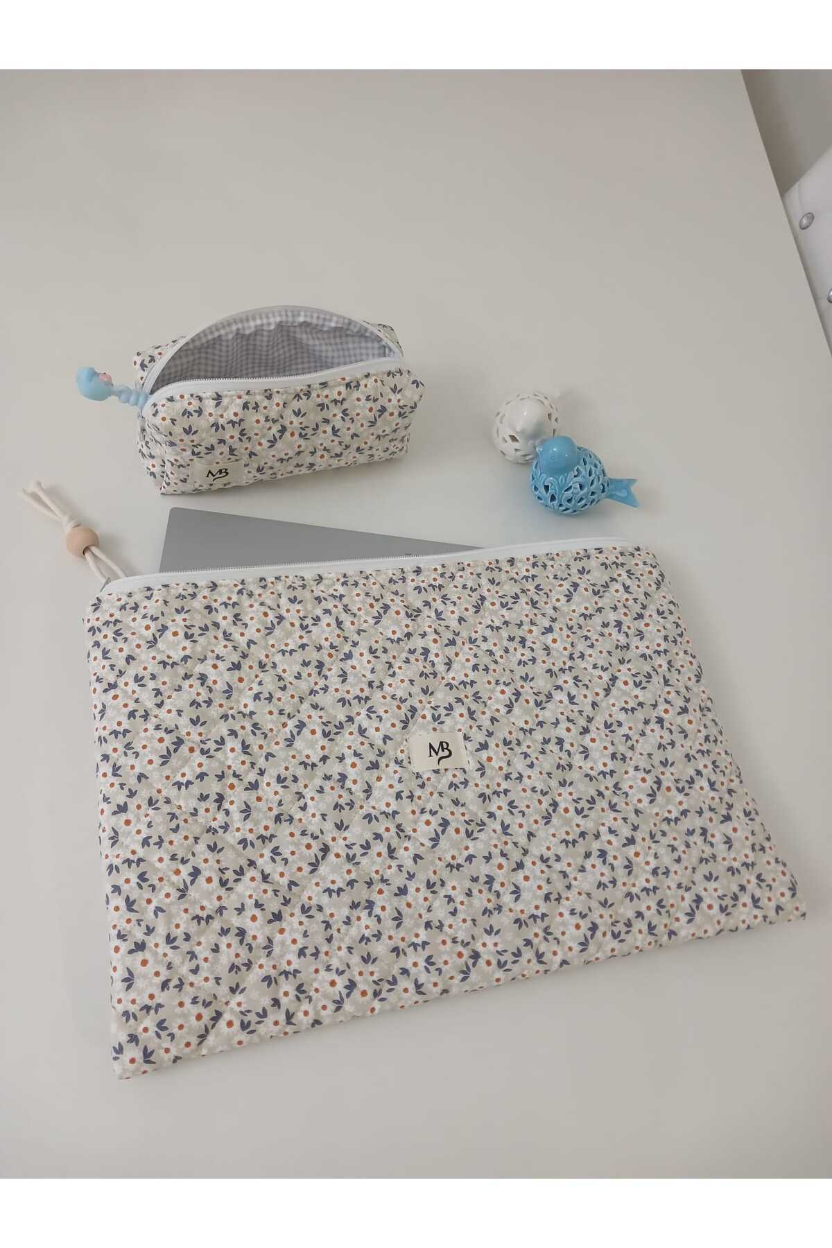 - Papatya deseniyle süslenmiş, şıklığı ve rahatlığı bir arada sunan laptop ve kalem çantasından oluşan 2'li set.
