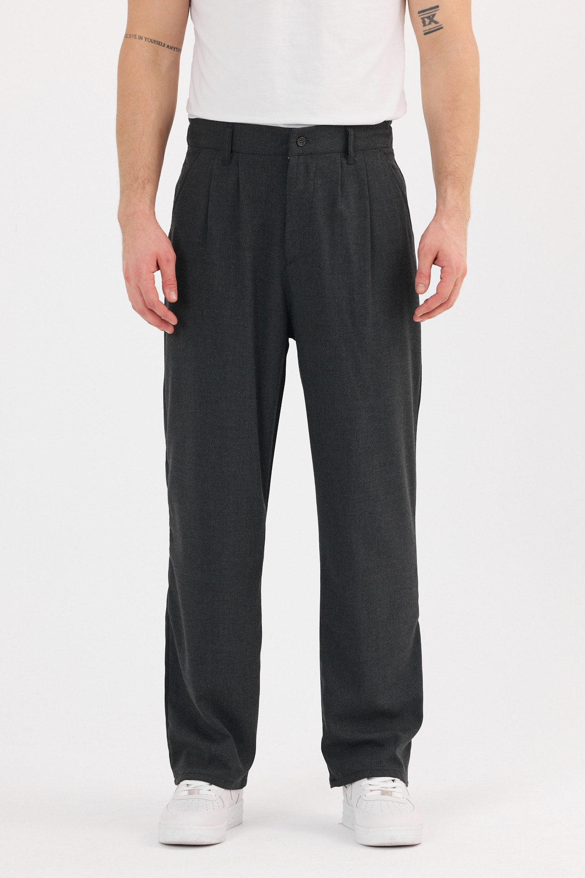- Rahat kesimiyle günlük kullanım için ideal olan erkek pileli baggy pantolon, esnek bel tasarımı sayesinde hareket özgürlüğü sunar.