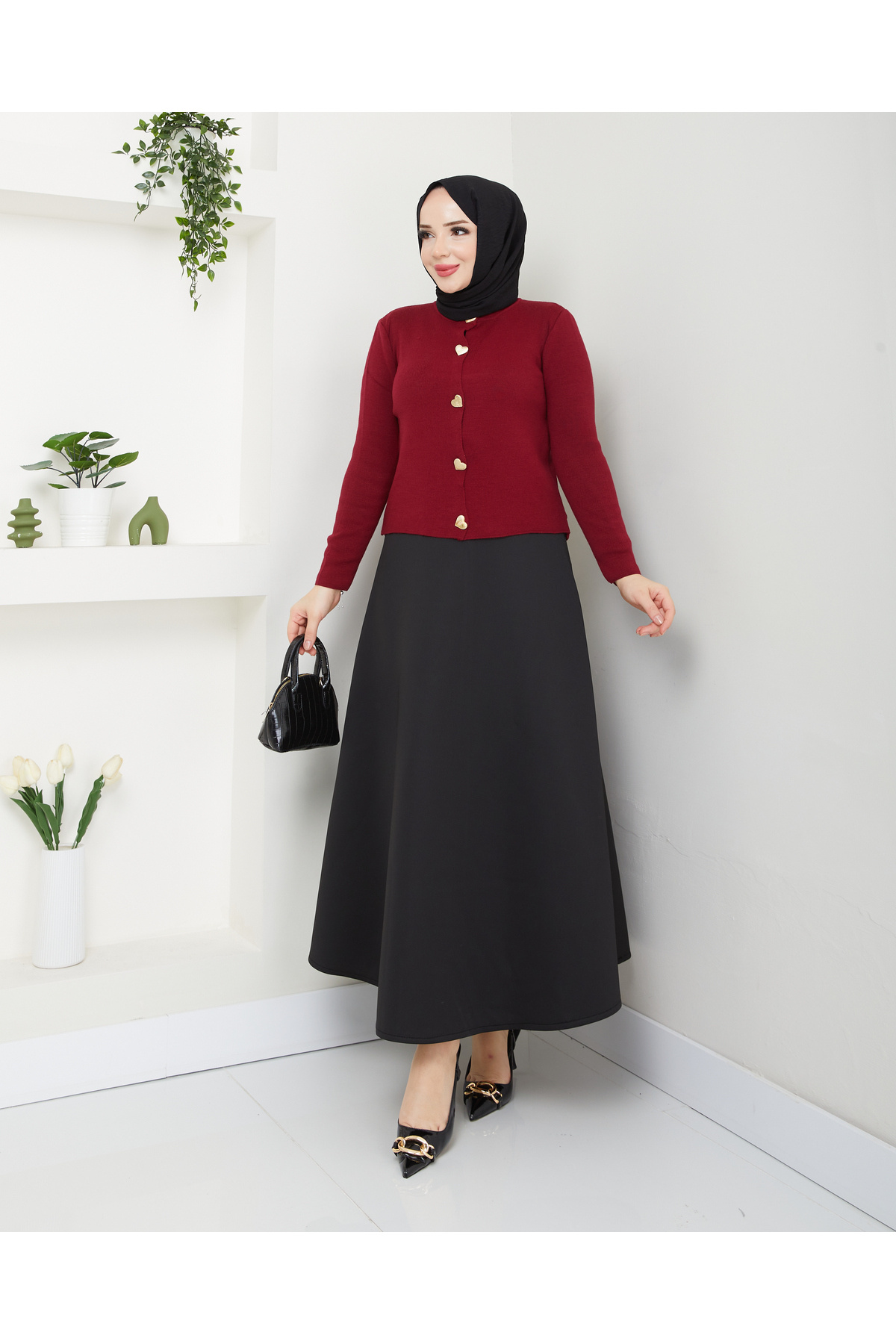 Kadın Kalpli Triko Hırkalı Scuba Etek Takım