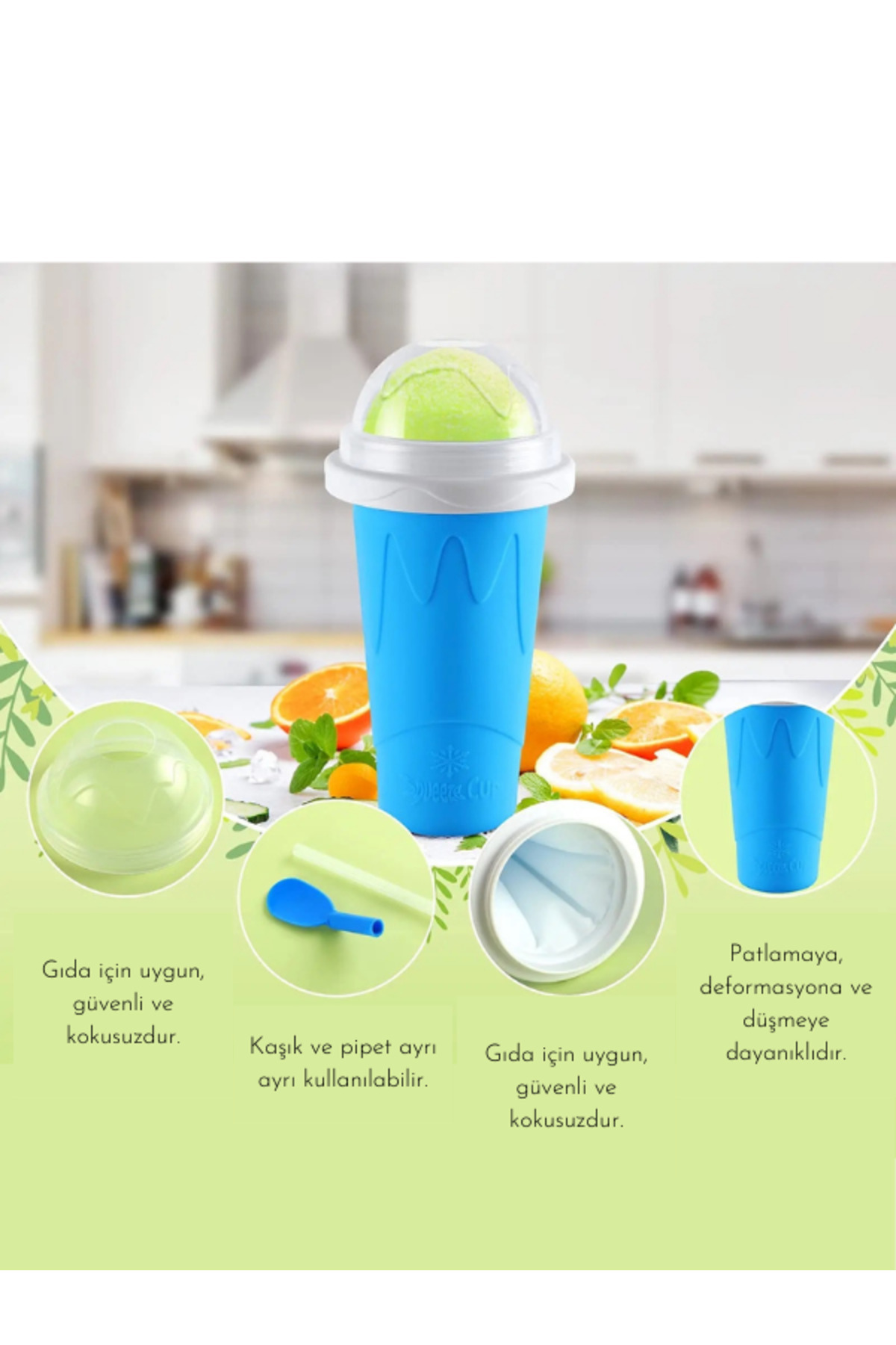 Karlı içecek yapma bardağı gövdesi gıda sınıfı silikona uyarlanmıştır, yumuşak ve deforme olmaz.