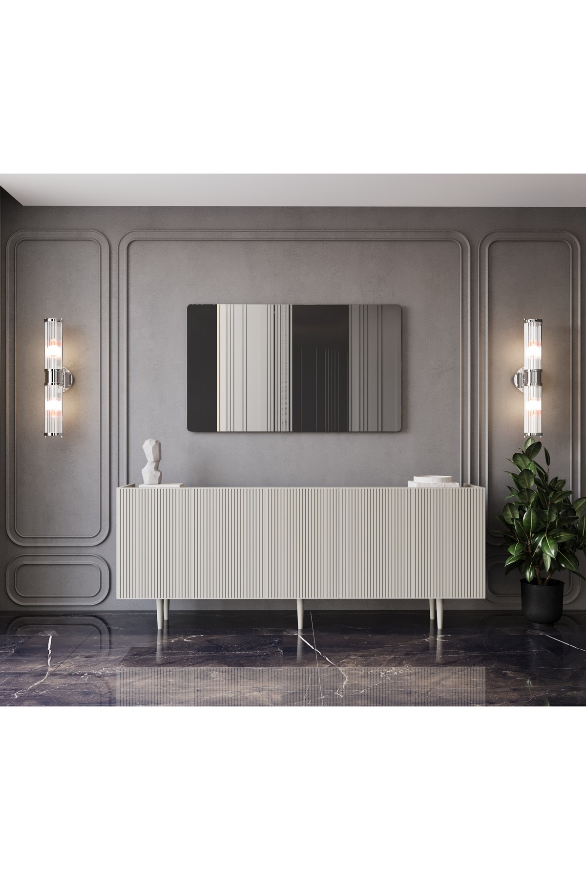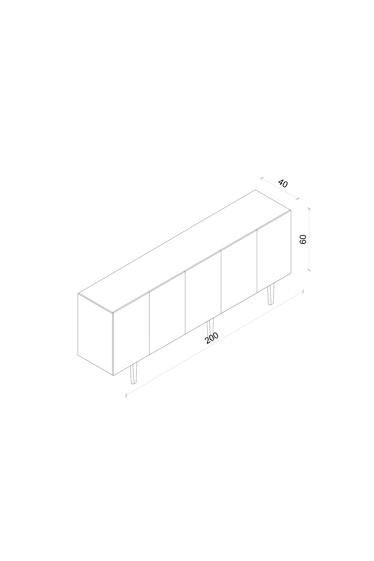 Capella Mdf 5 Kapaklı Raflı Ahşap Ayaklı 200 cm Konsol (200X80X40 CM)
