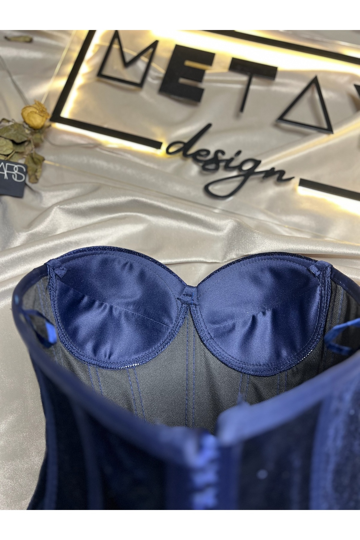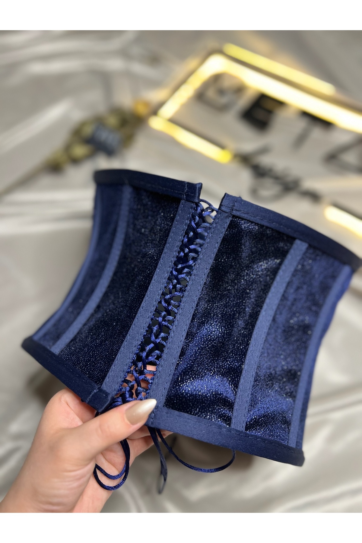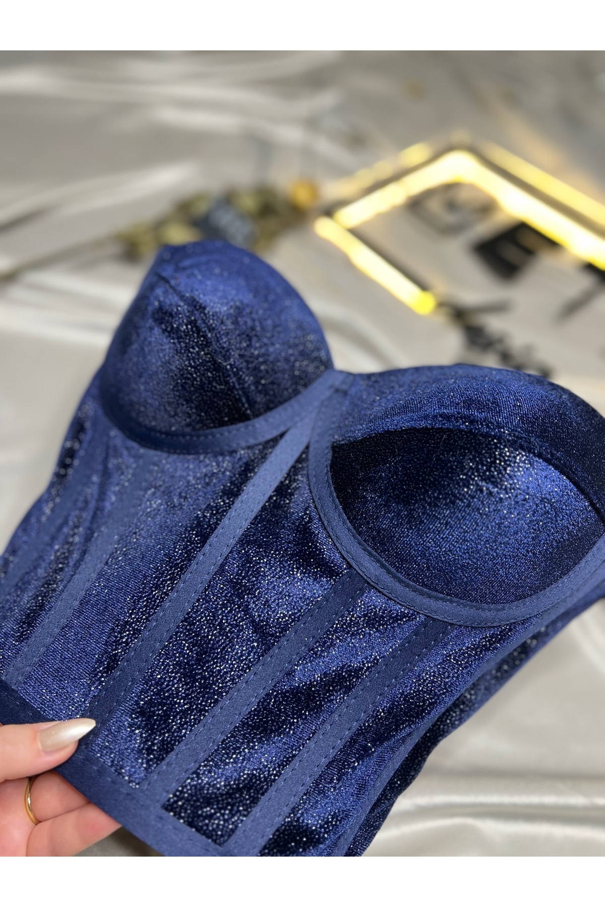 Simli Kadife Korse Büstiyer - Lacivert