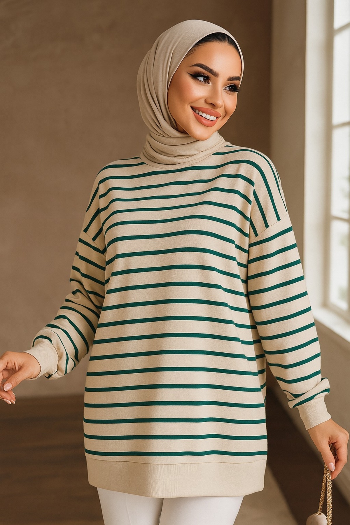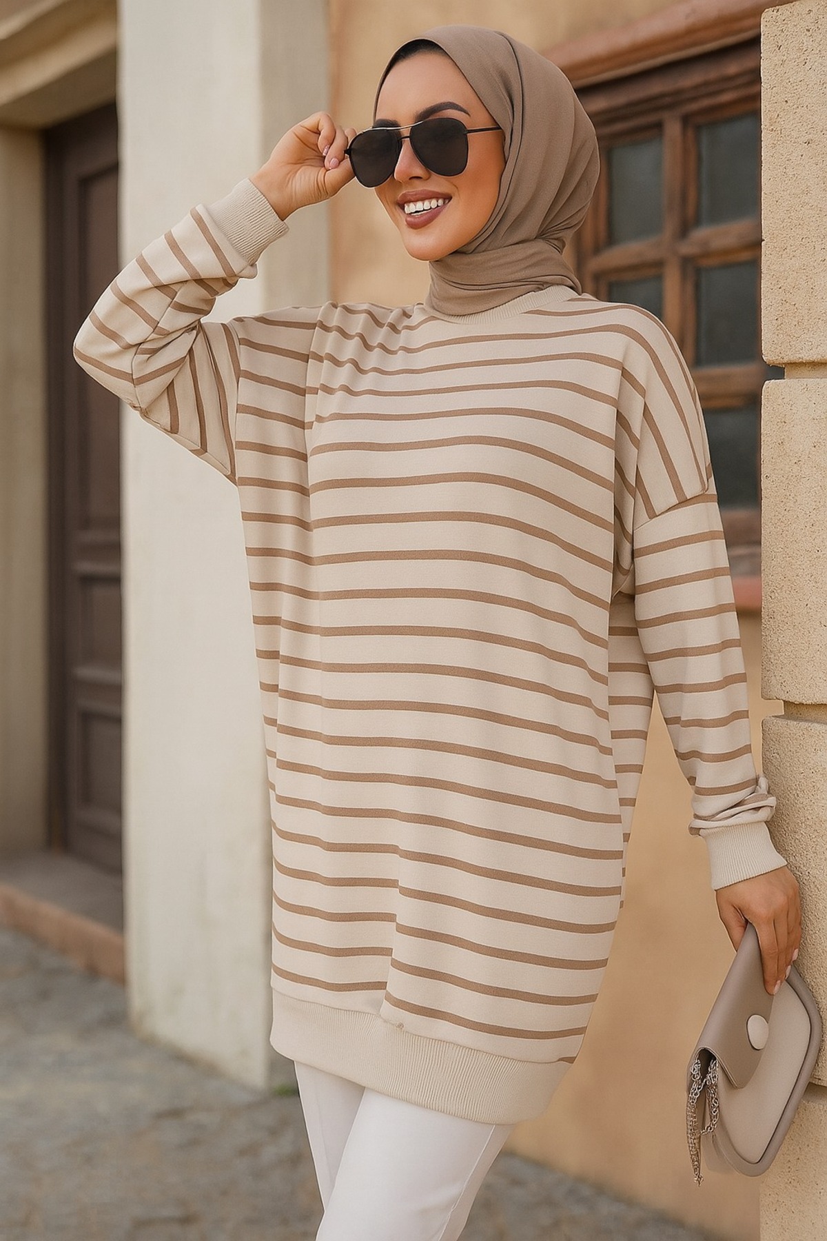 Çizgili Vizon Tesettür Tunik 30175V
