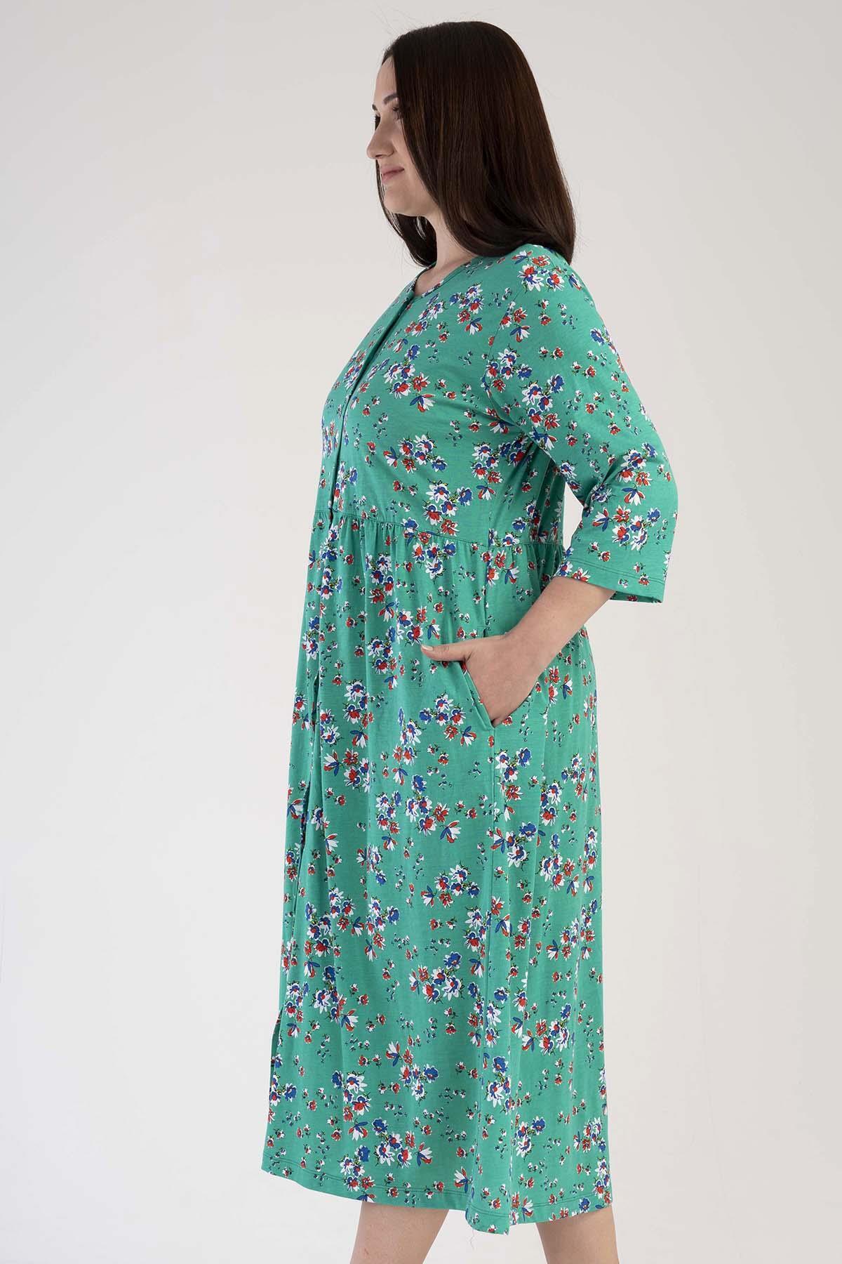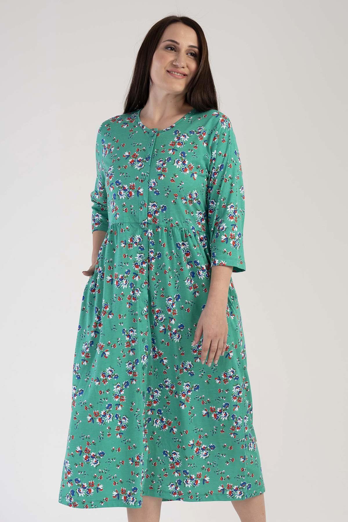 Midi boy uzunluğu, cepli tasarımı ve üç çeyrek kol detayları ile günlük ev giyiminde tercih edebileceğiniz zarif bir seçenek.