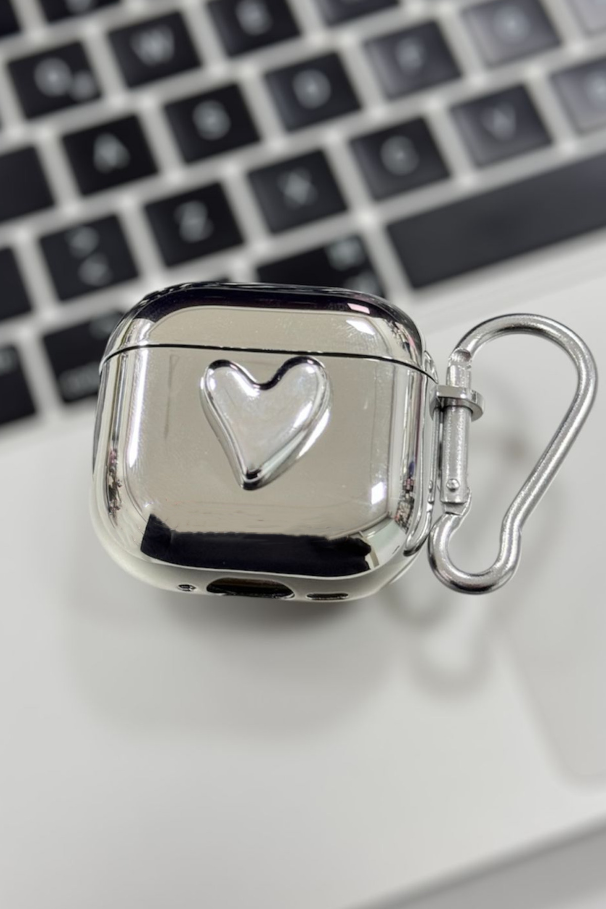 4. Nesil Uyumlu 2024 Kulaklık Kılıfı Kancalı Gümüş kalp