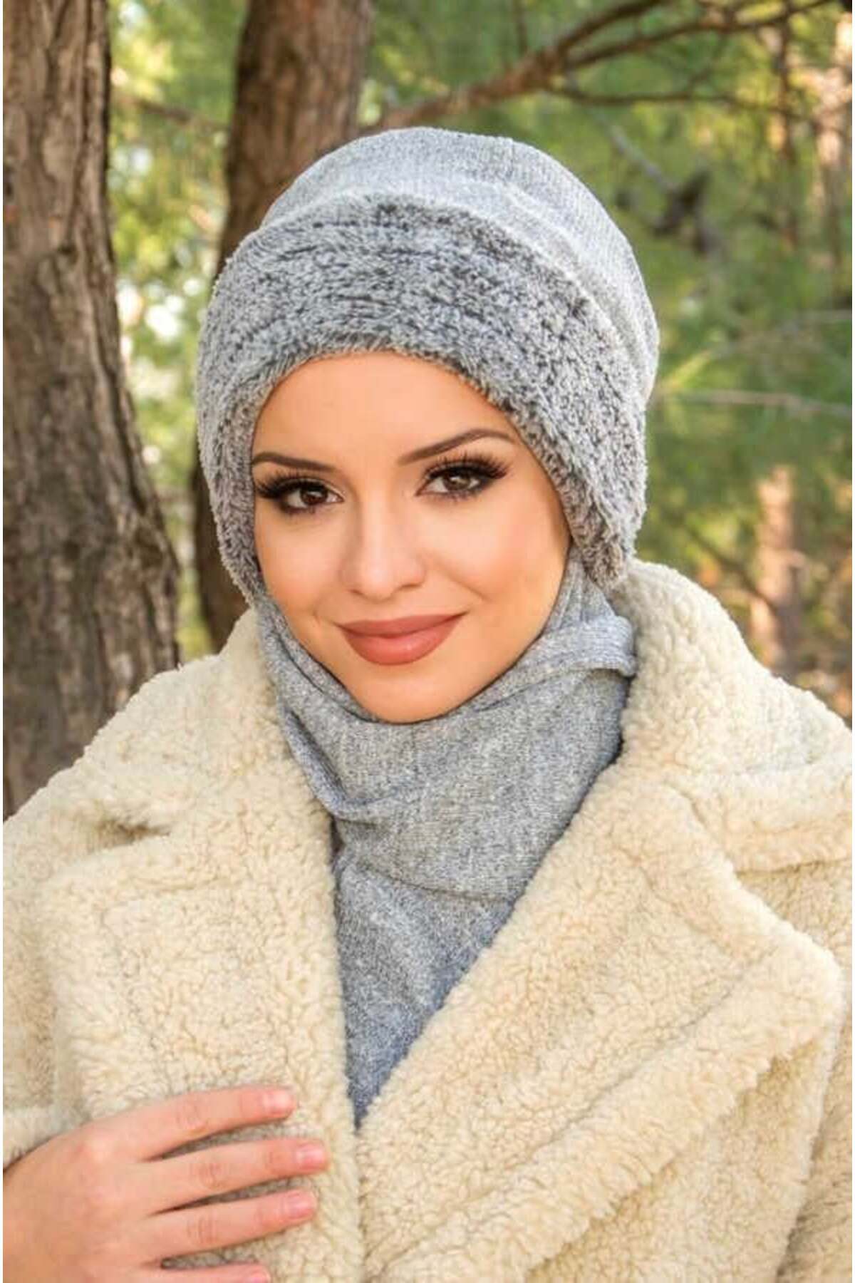Siyah Kürk Aksesuarlı Tesettür Bere