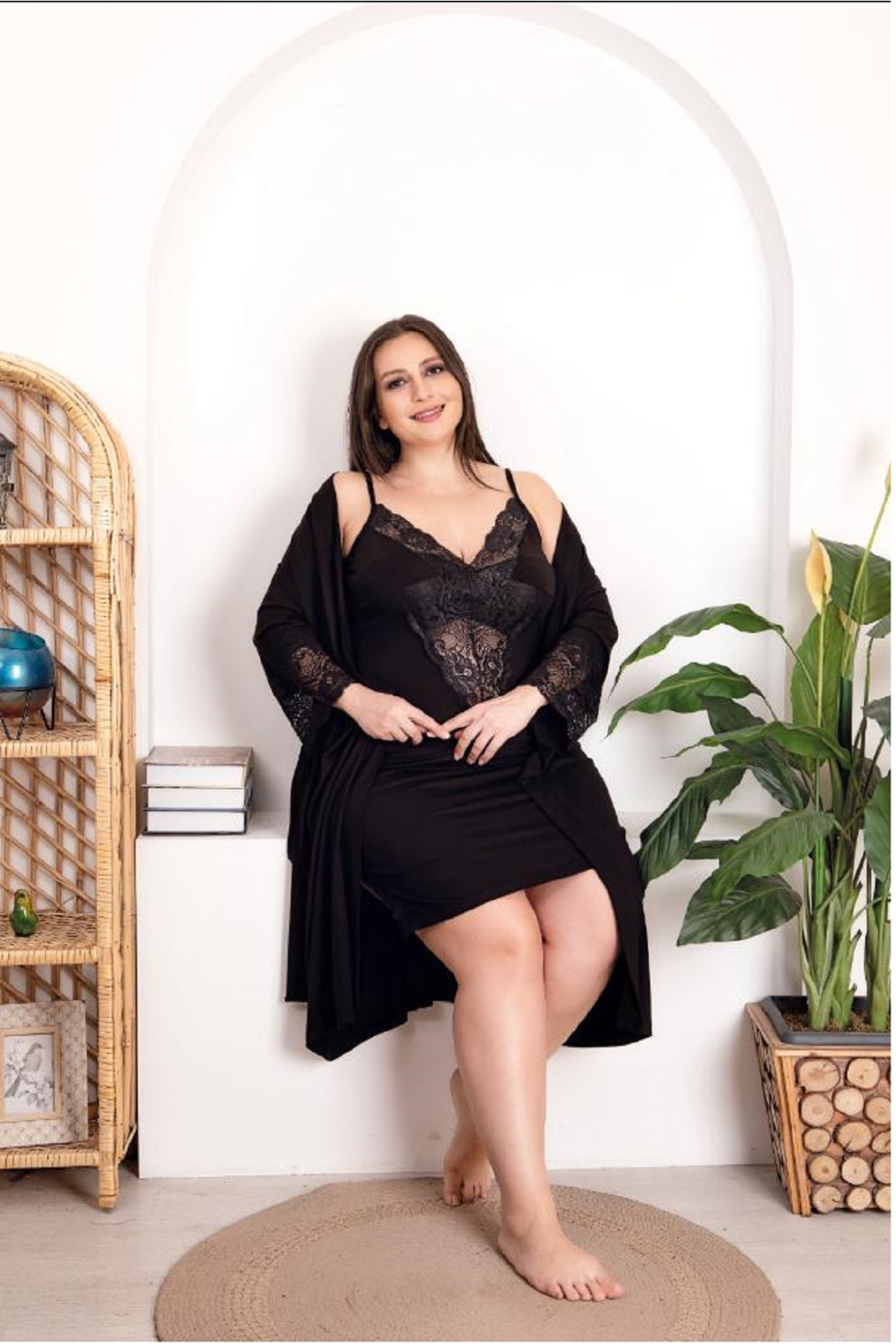 - Rahat ve şık bir uyku deneyimi için tasarlanmış, büyük beden likralı penye gecelik takım.