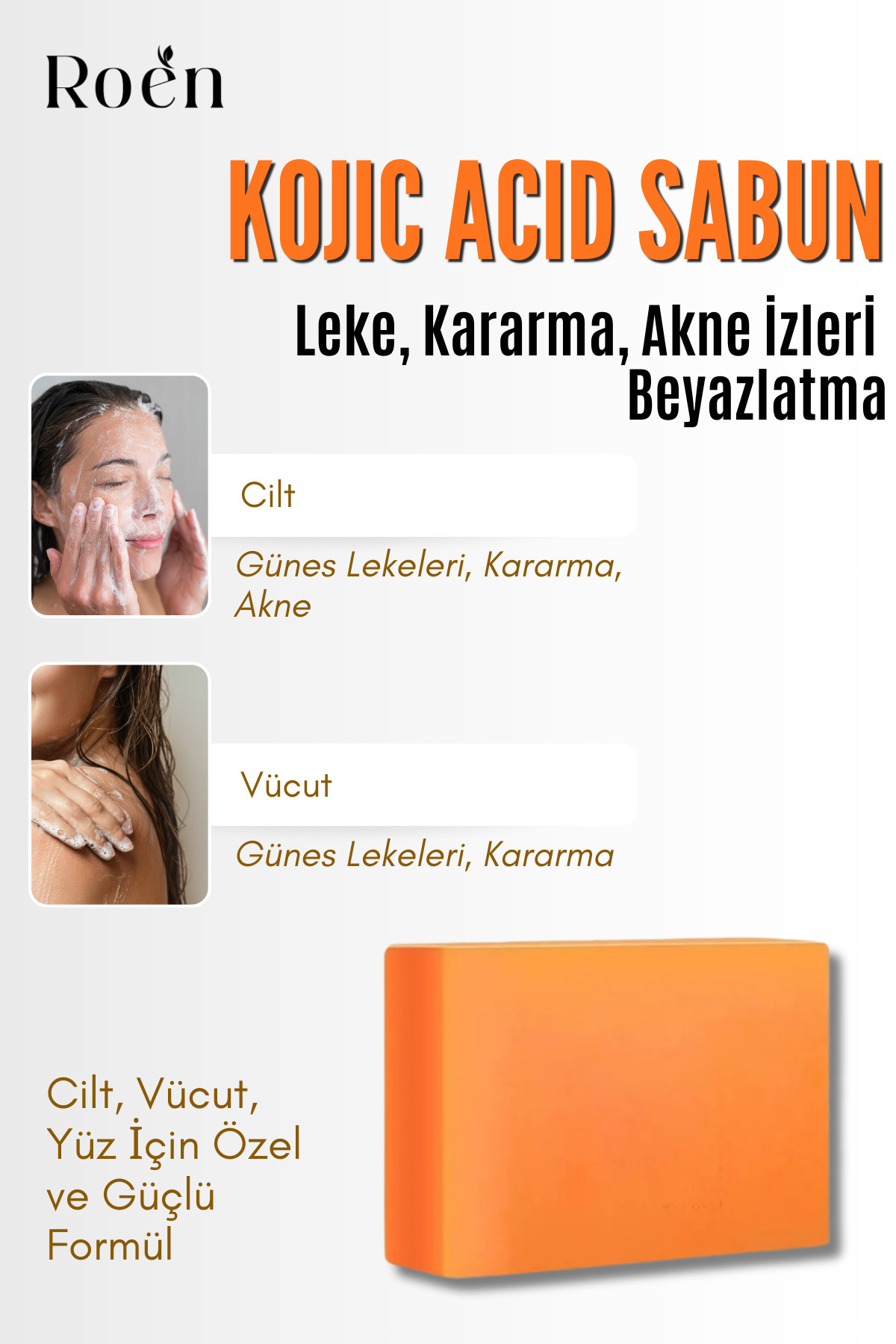 Doğal Kojik Asit Sabun, Cilt Beyazlatıcı, Leke Giderme, Kararma, Akne, Güneş Lekeleri 110gr