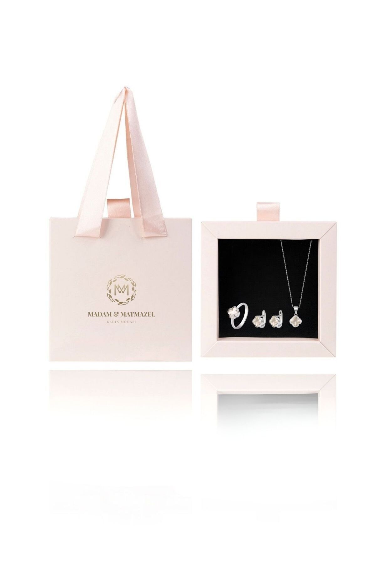 ❤ Minimal Yonca Gümüş Kadın Takı Set : Gümüş veya taşlarla yonca motif üzerine şık bir tasarım yapılmıştır.