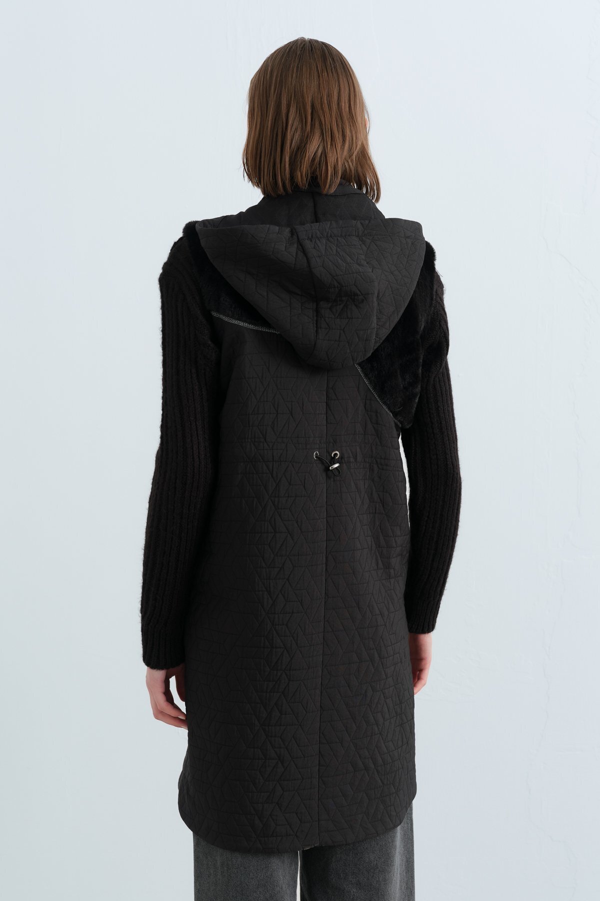İnce Kapitone Peluş Detaylı Yelek Siyah