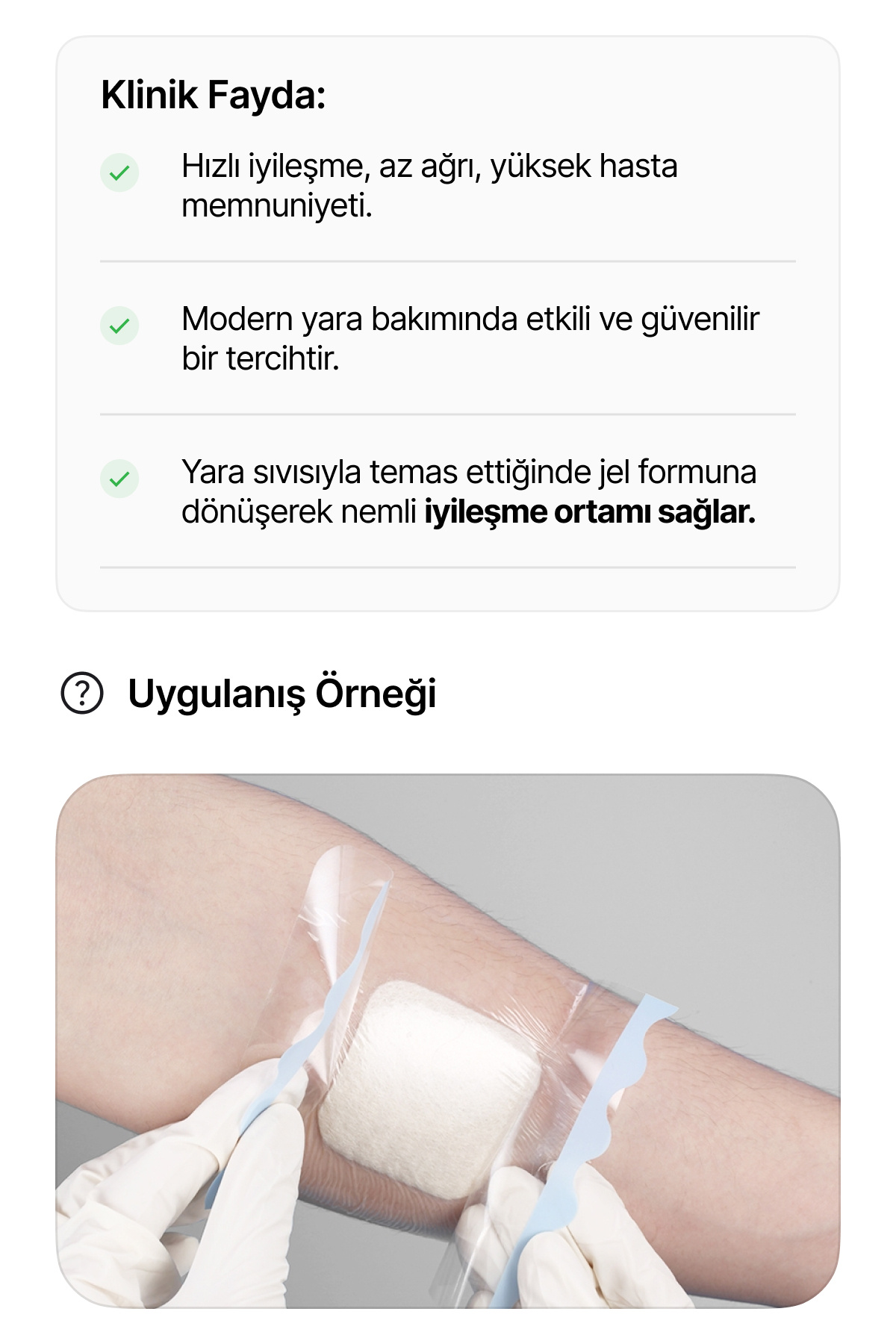 Ürün yaradaki akıntıları etkili bir şekilde emer.