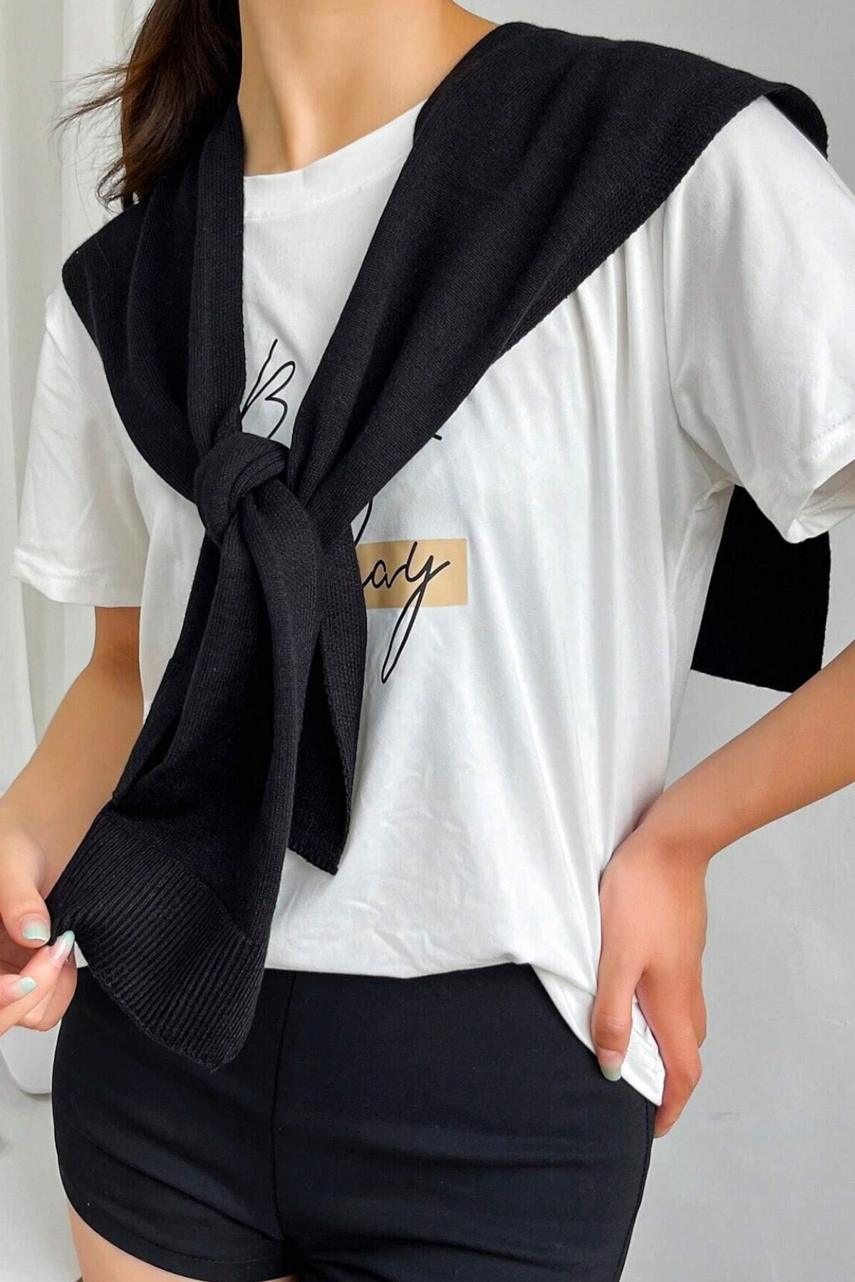 • Modern siyah beyaz çizgili tasarımı, günlük kombinlerinizi tamamlayarak stilinize zarif bir dokunuş katar.