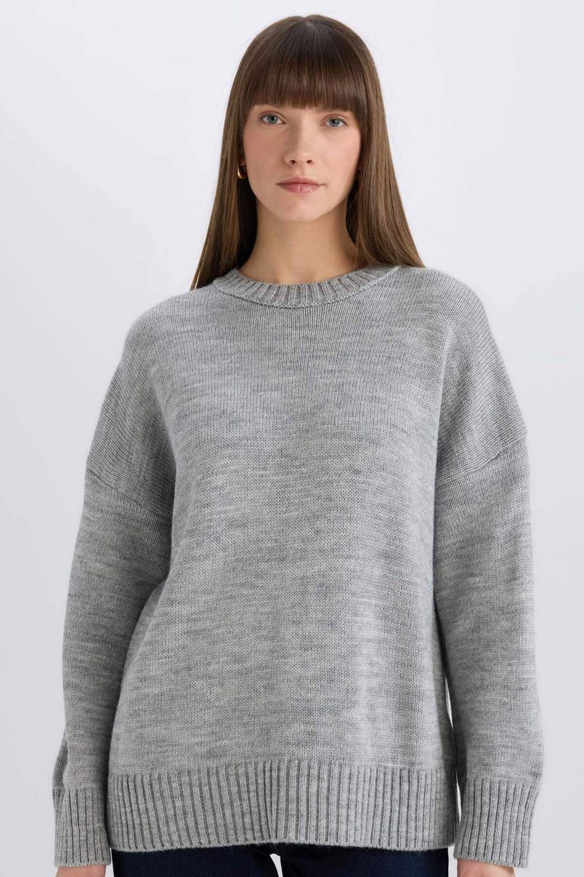 Oversize geniş kalıbı ve bisiklet yaka tasarımıyla rahat bir şıklık sunan bu basic düz triko kazak, her kombinle uyum sağlar.
