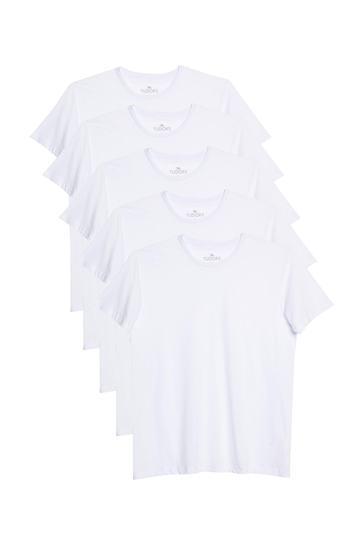 Unisex 5'li Paket Beyaz Slim Fit Dar Kesim %100 Pamuk Bisiklet Yaka Tişört