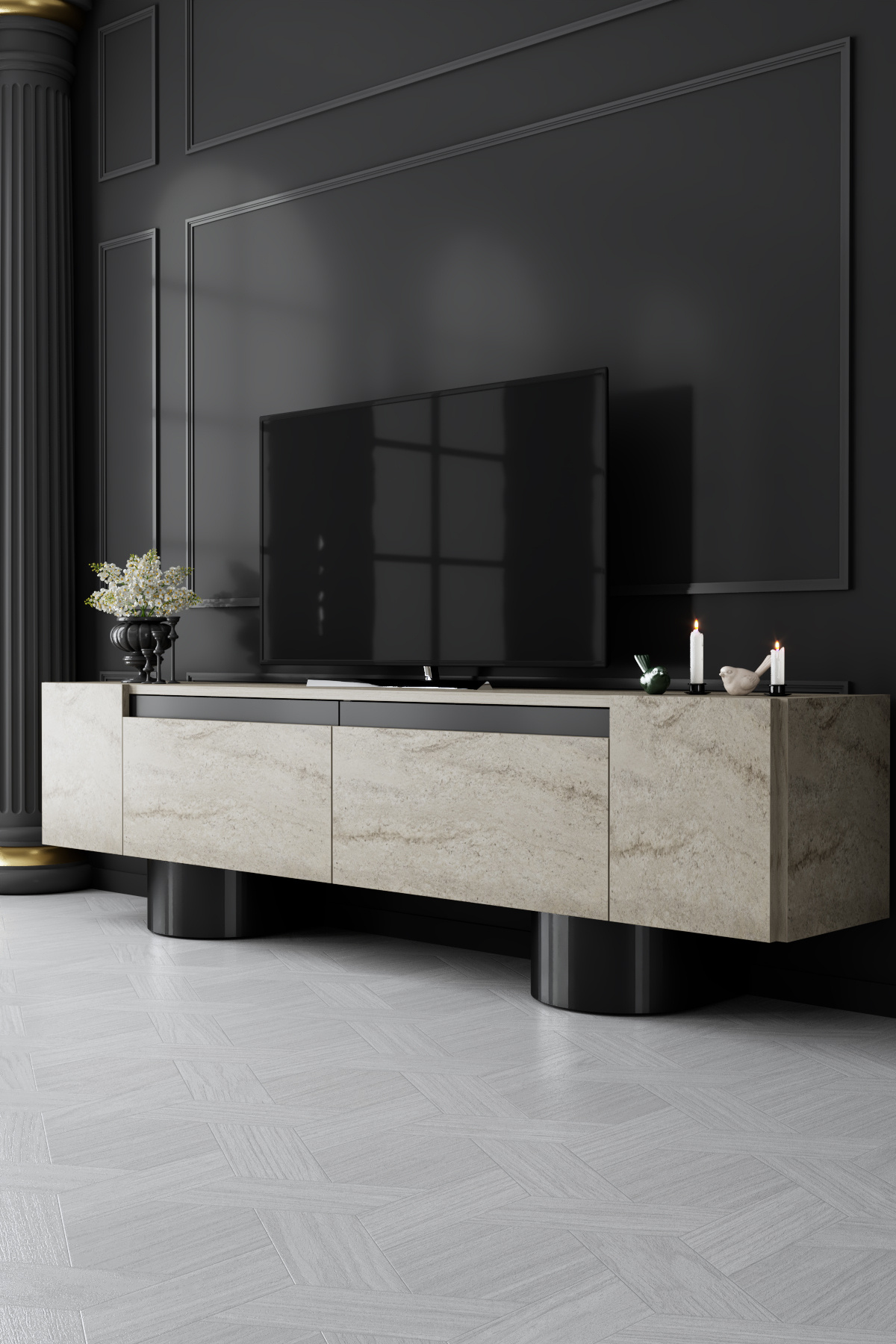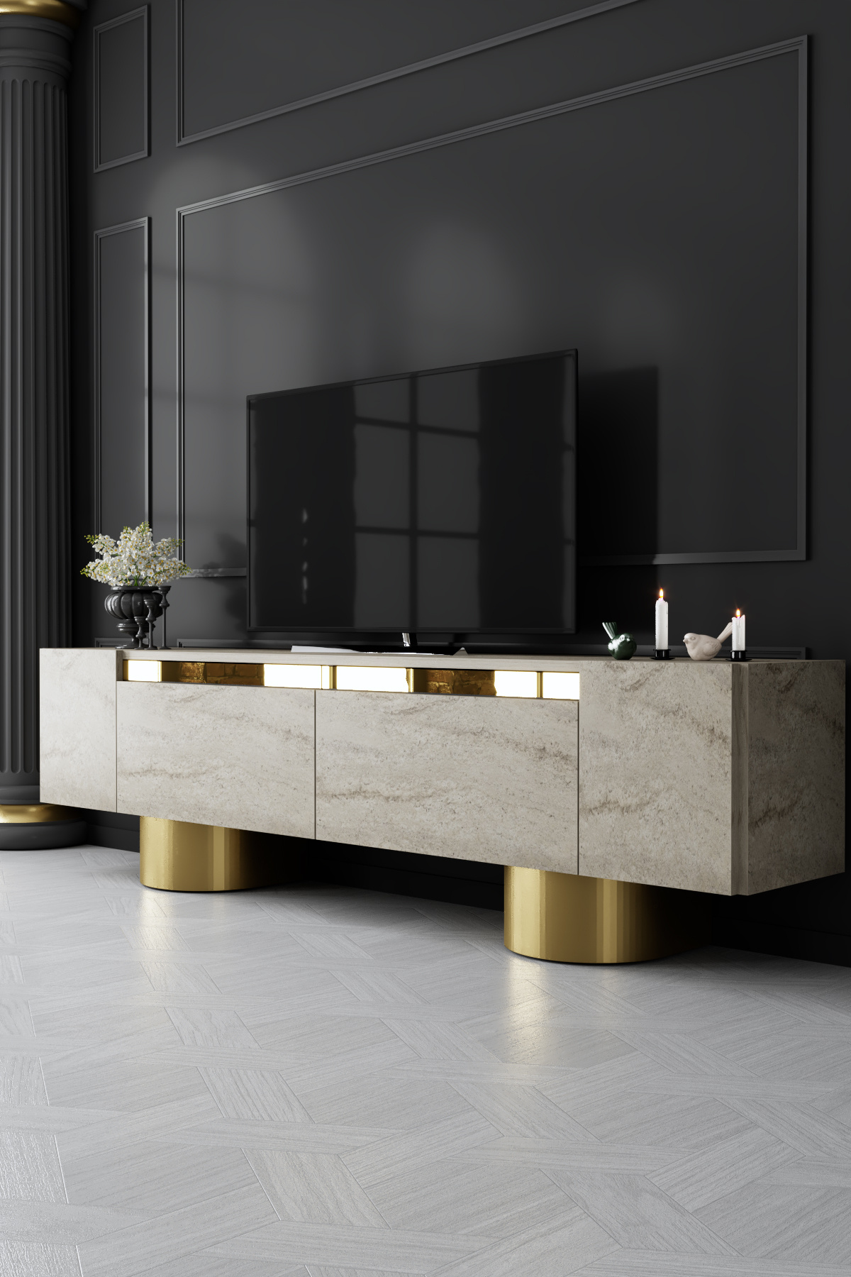 BOHEM GOLD METAL AYAKLI GOLD TASARIM BEYAZ TV ÜNİTESİ