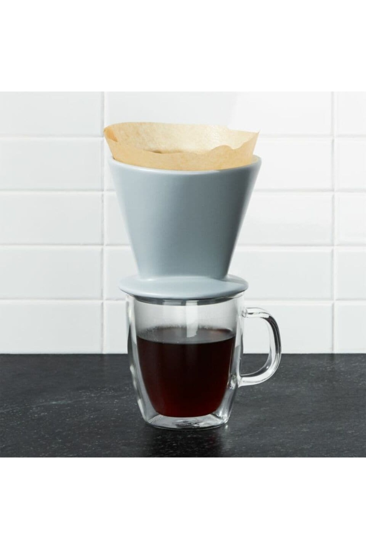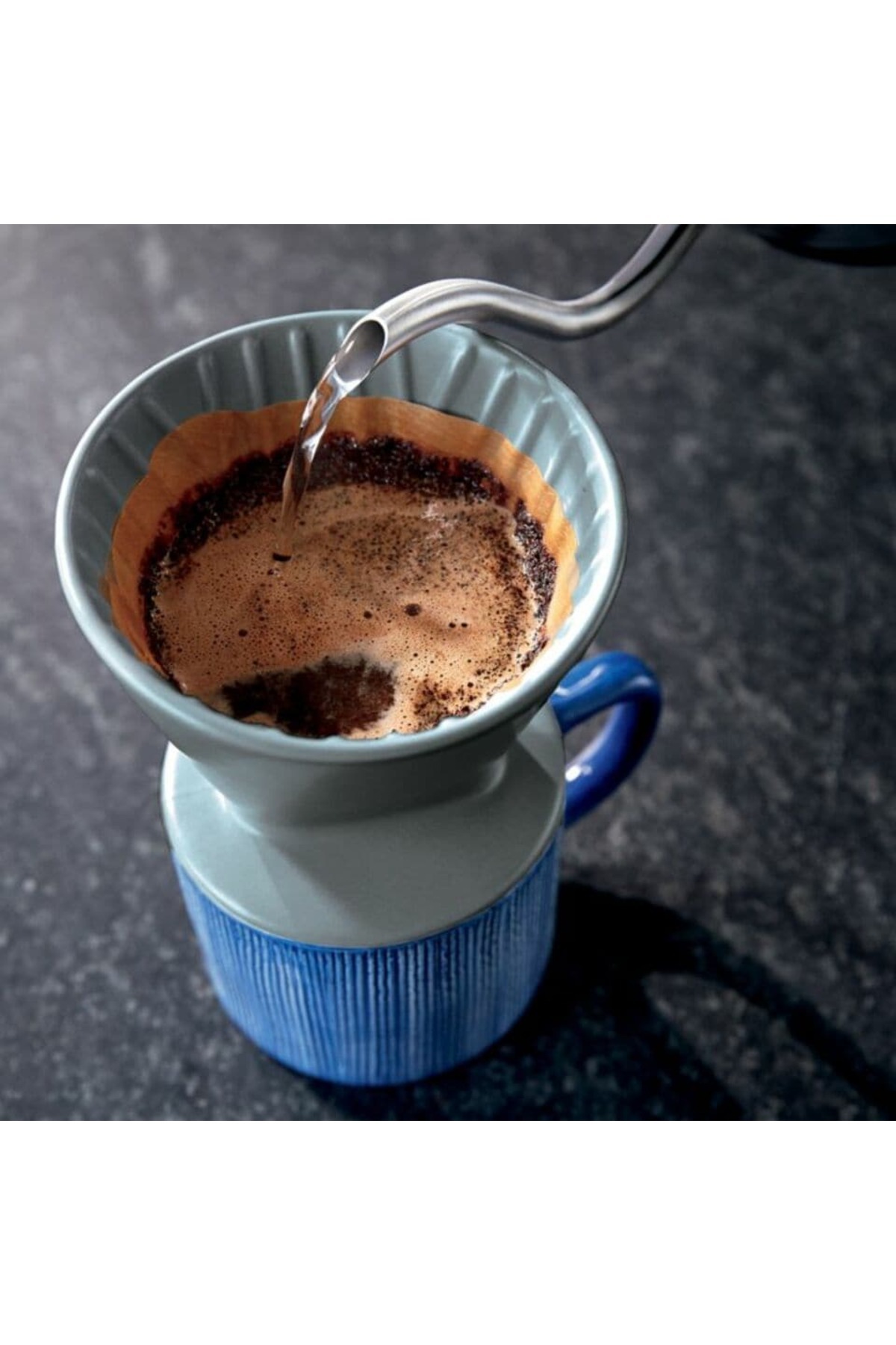 Gri Seramik 4 Bardaklık Pour-Over, Demleme Seti