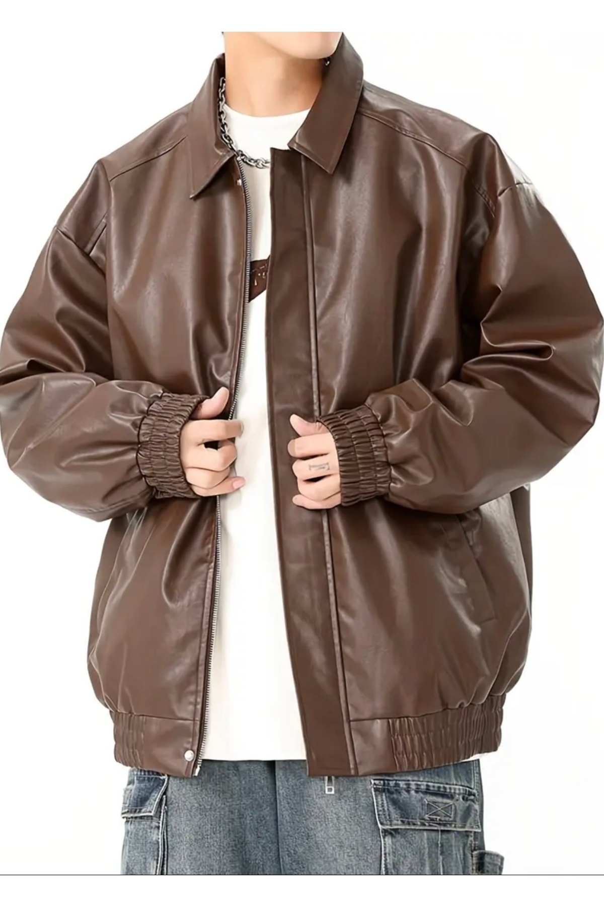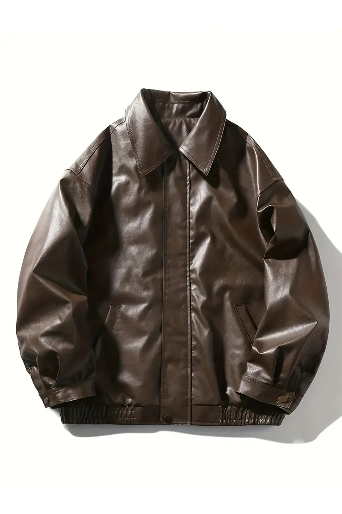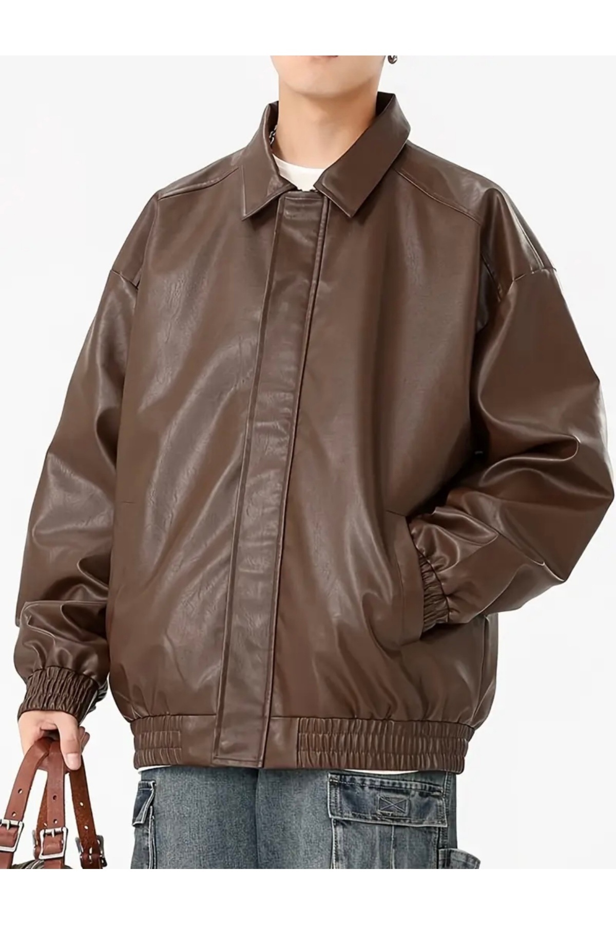 Kahverengi Oversize Unisex Vintage Deri Ceket