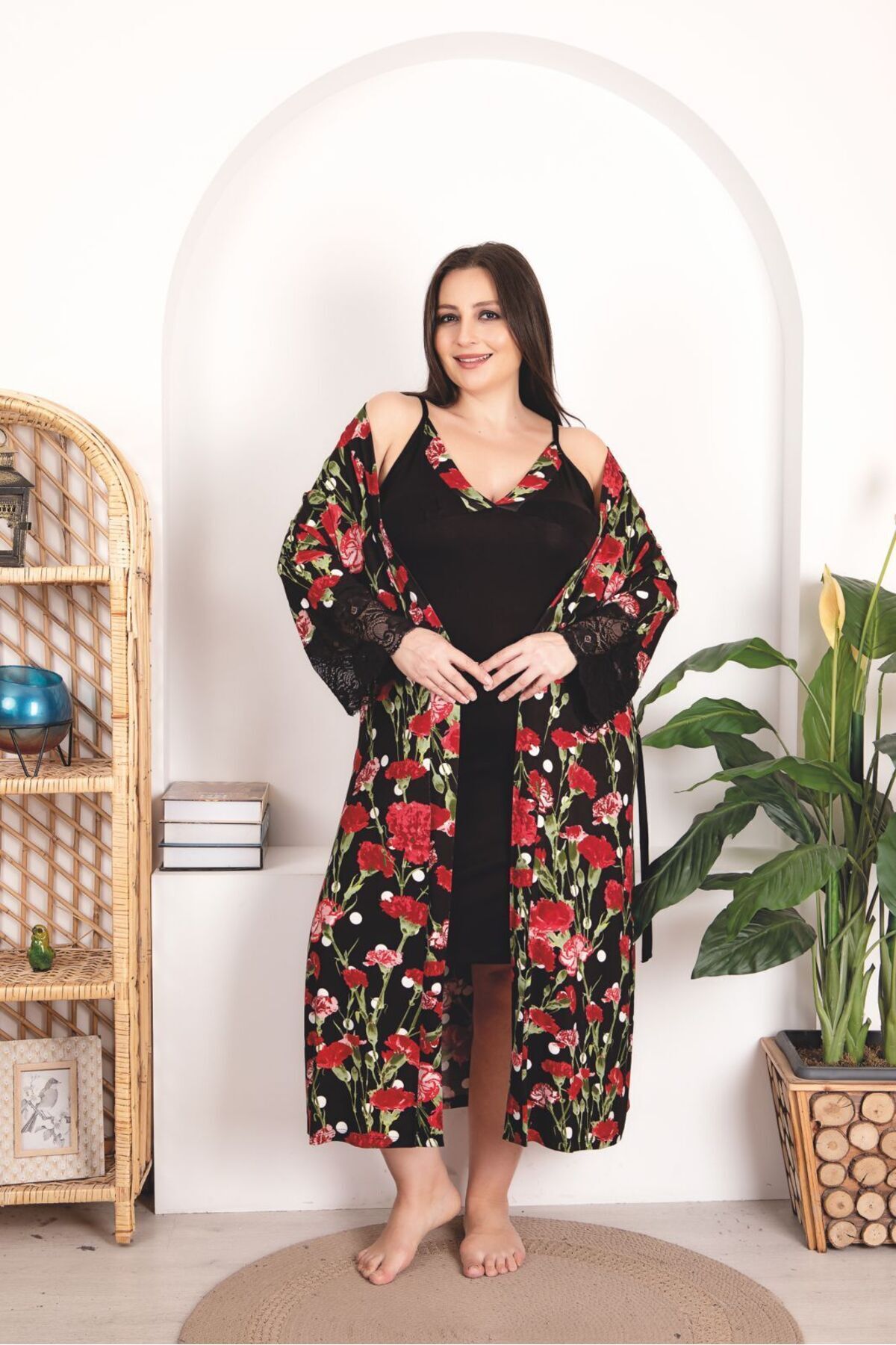Büyük Beden Öncü Markası Tarzımsüper'den Yeni Sezon Sabahlıklı Askılı Gecelik Takım