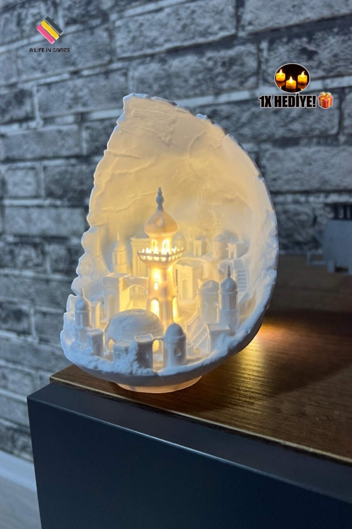 Ay Şehri (MOON CİTY) Ledli Dekoratif Obje Ev Ofis Dekor Balkon Kitaplık, Sevgililer Günü Hediye 15cm