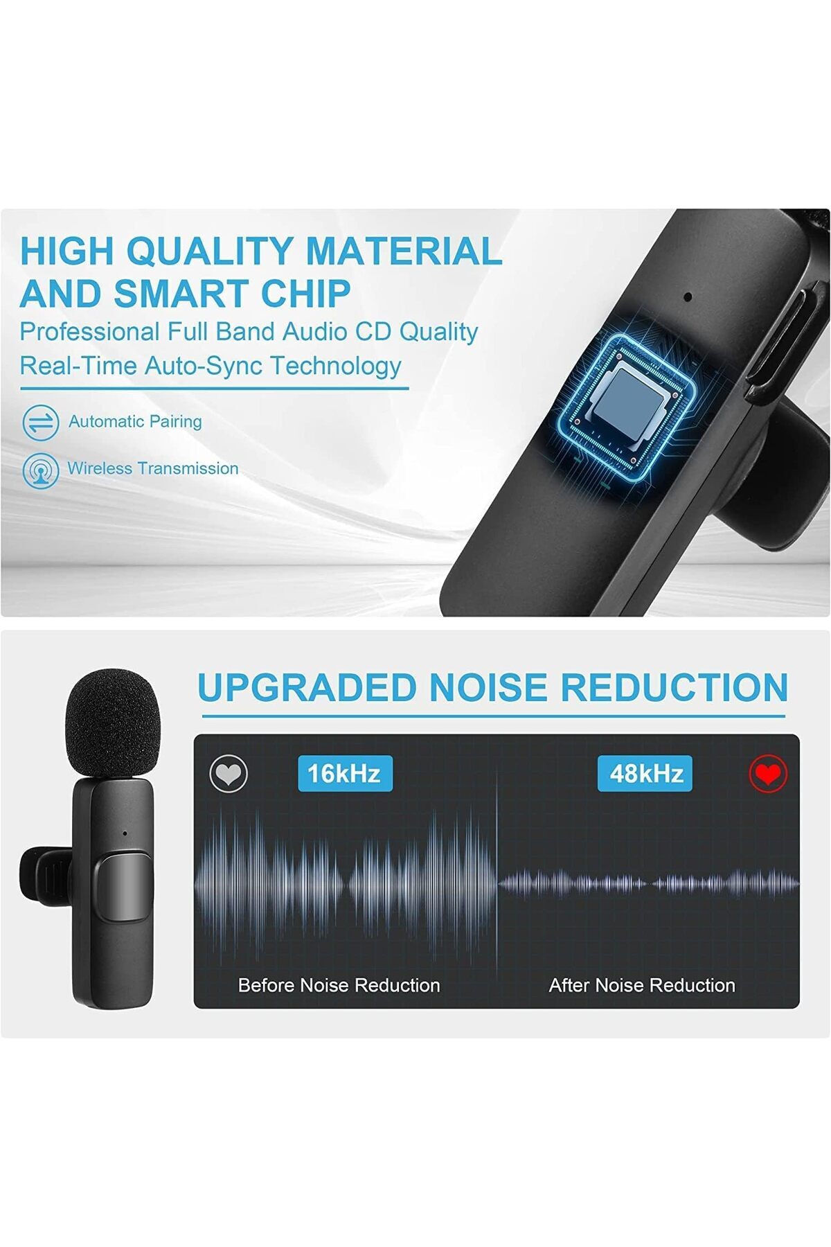 Çift Mikrofonlu Profesyonel Type-c Yaka Mikrofonu Akıllı Telefon Kablosuz Otomatik Tak Çalıştır