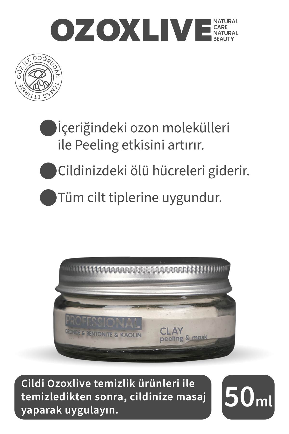 Dermatolojik olarak test edilmiştir. İçeriğindeki aktif ozon moleküller ve mikropartiküller ile peeling etkisi oluşturarak ölü hücreleri giderir, cildin daha sonra yapılacak uygulamalara hazır hale gelmesini saglar. Tüm cilt tipleri icin kullanılabilir. Ürün içeriğindeki Bentonit Kil