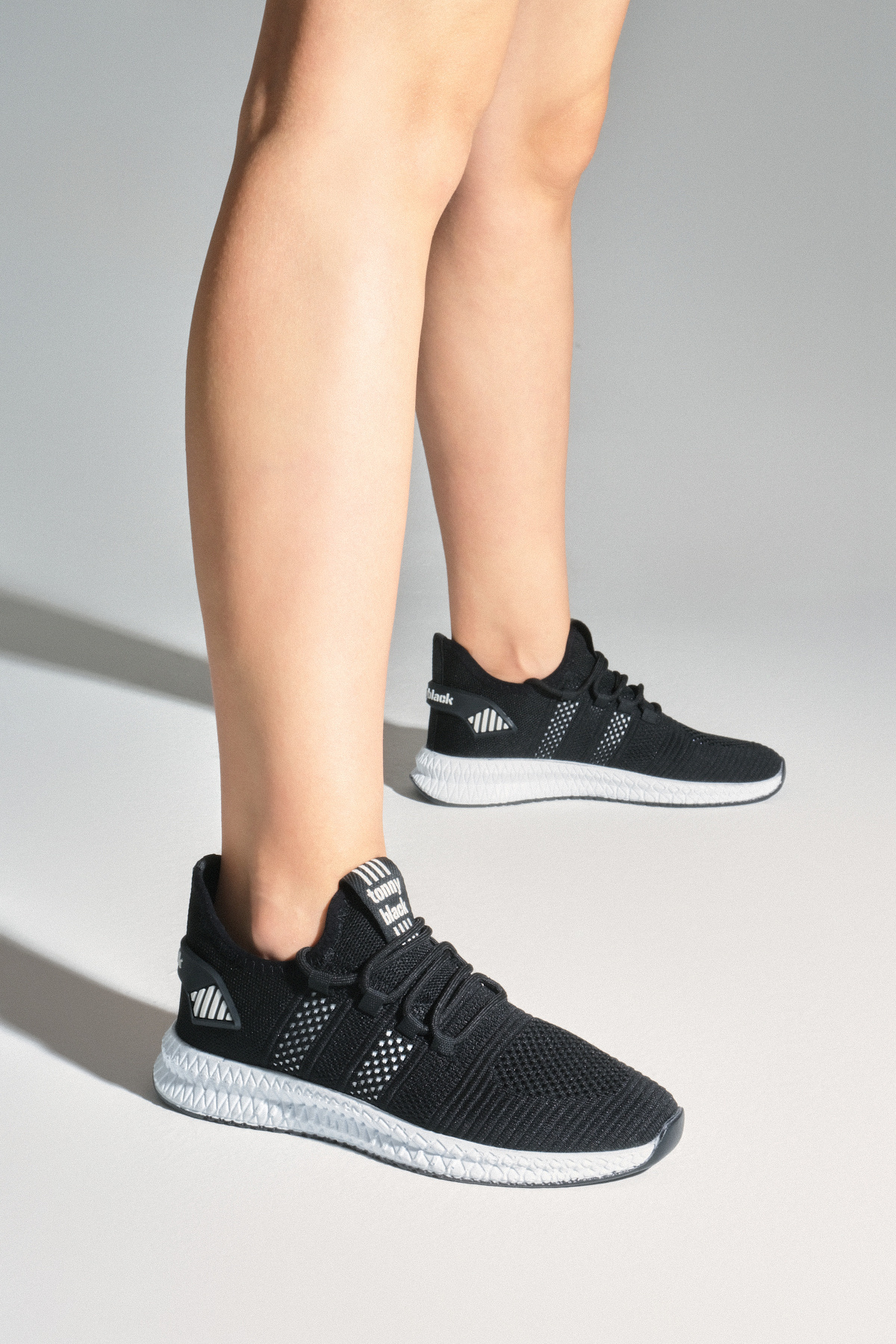 Unisex Siyah Rahat Kalıp Yanı Şerit Deseli Bağcıklı Spor Ayakkabı