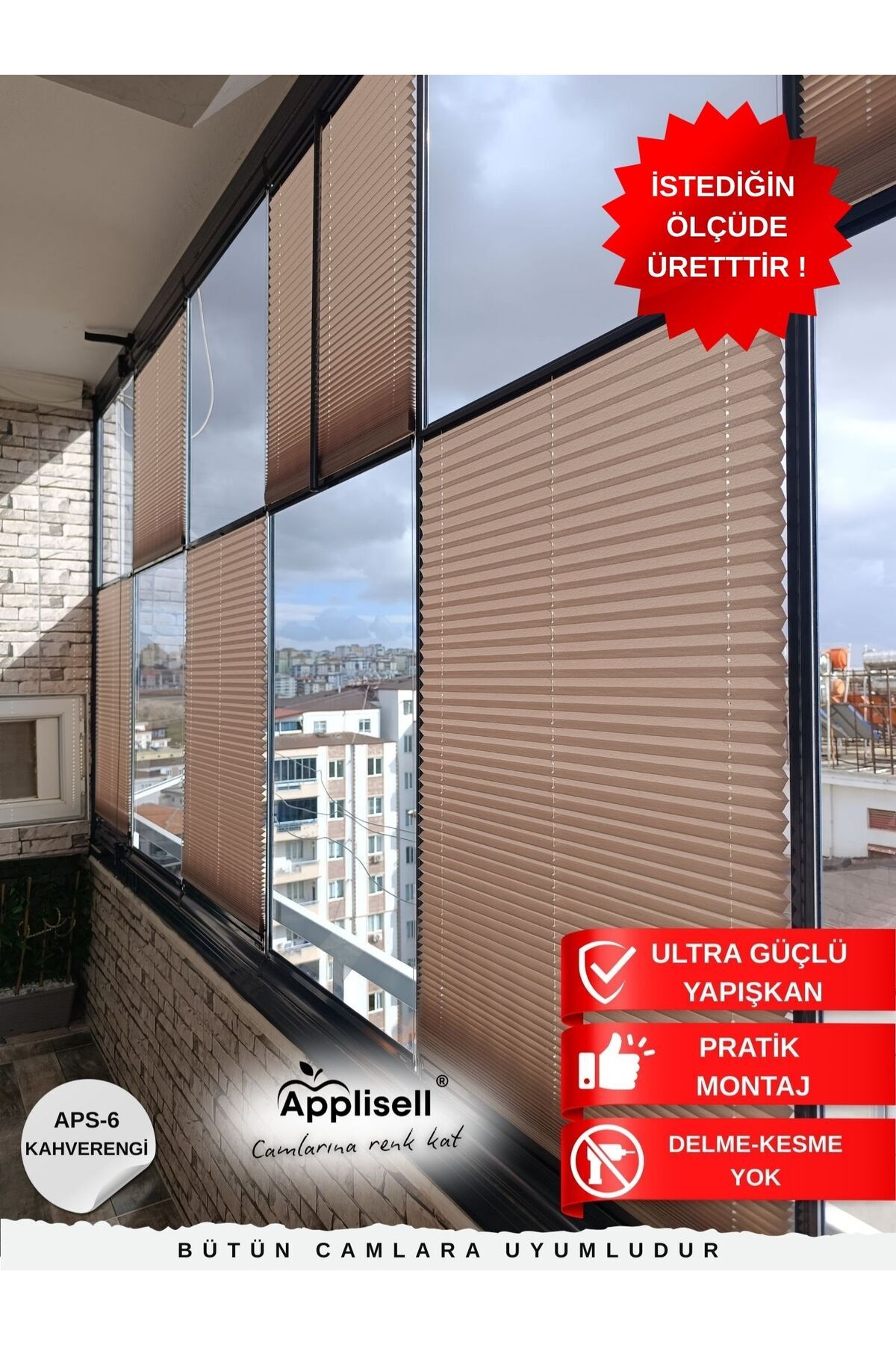 Applisell Plise Perde Ultra Yapışkanlı Cam Balkon Perdesi - Kolay Montaj - Yapışkanlı Balkon Perdesi