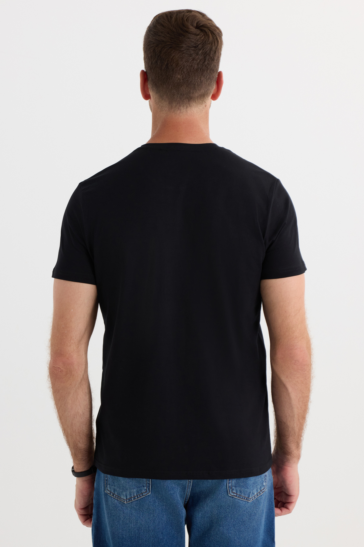 Erkek Slim Fit Dar Kesim Pamuklu Yumuşak Doku Likralı Esnek Kumaş Basic Siyah Bisiklet Yaka Tişört