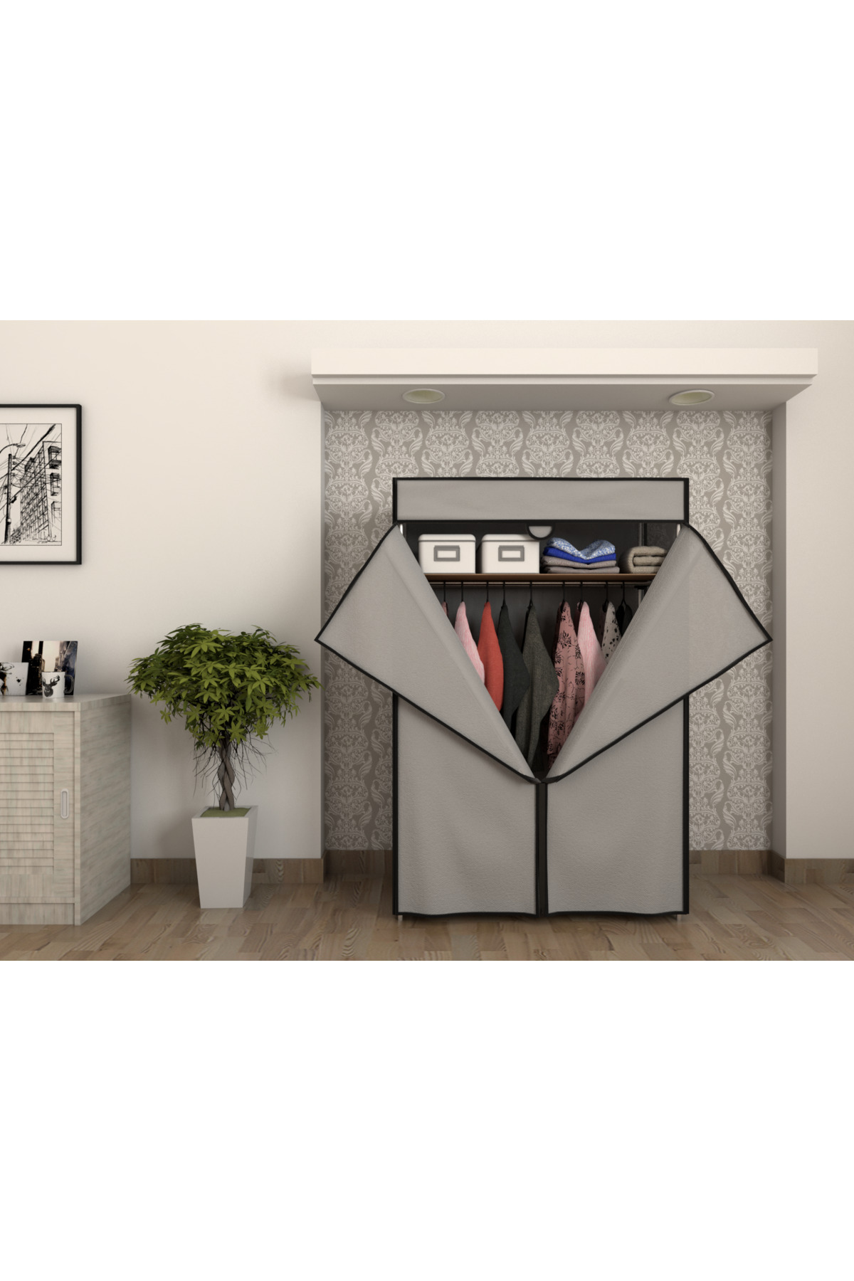 Plastik Raflı Çelik Borulu Askılı Bez Dolap Gardırop