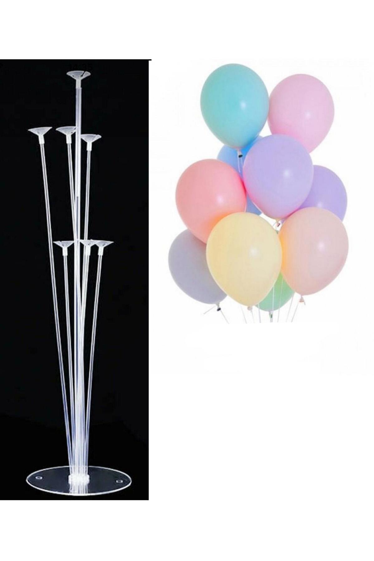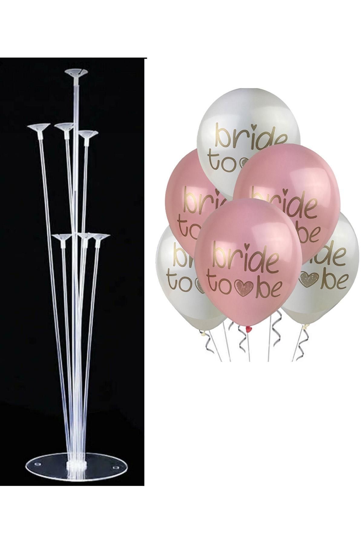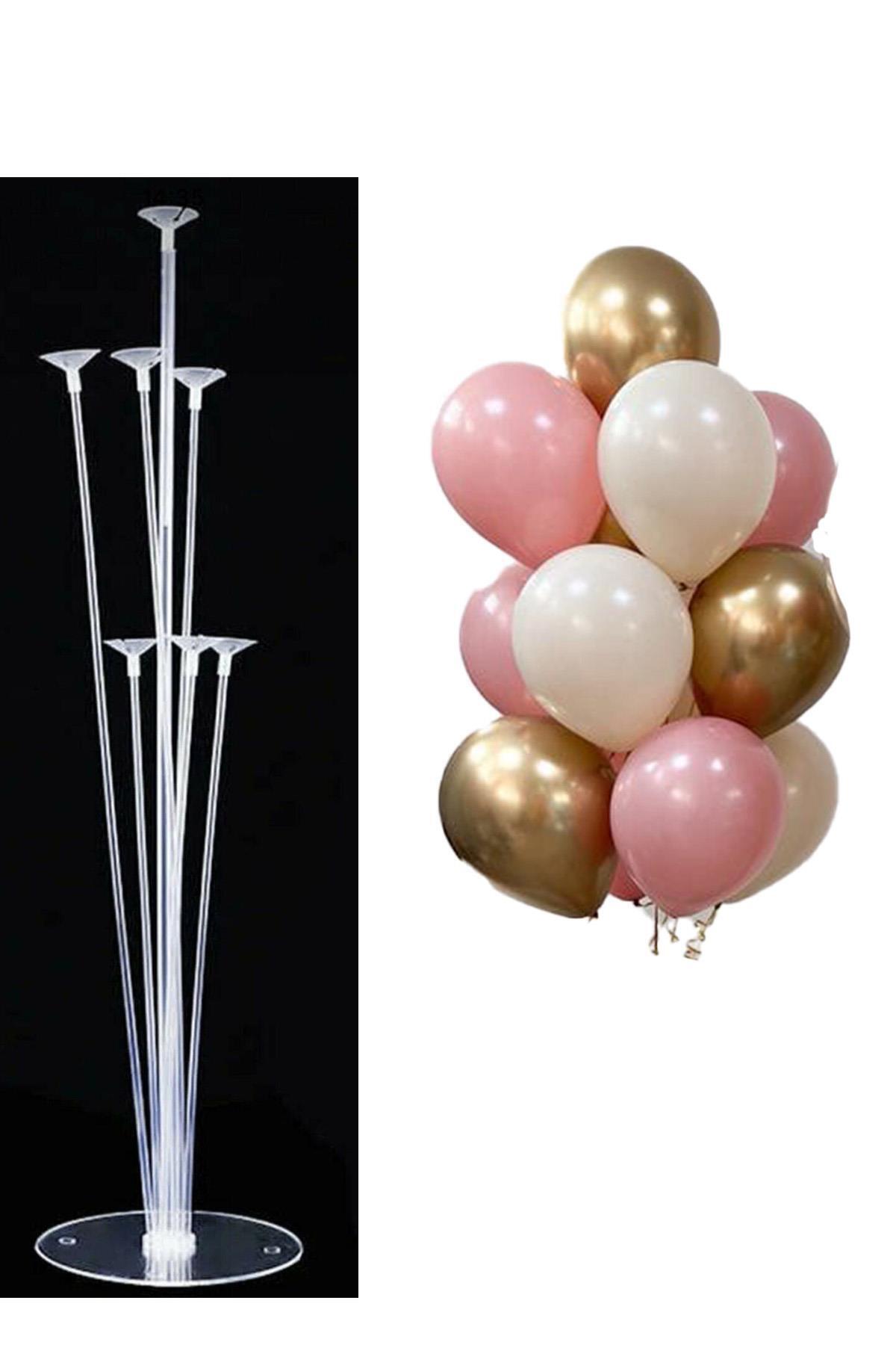 7'li Balon Standı ve 10 Adet Krom Gold, Kum ve Pembe Balon Set