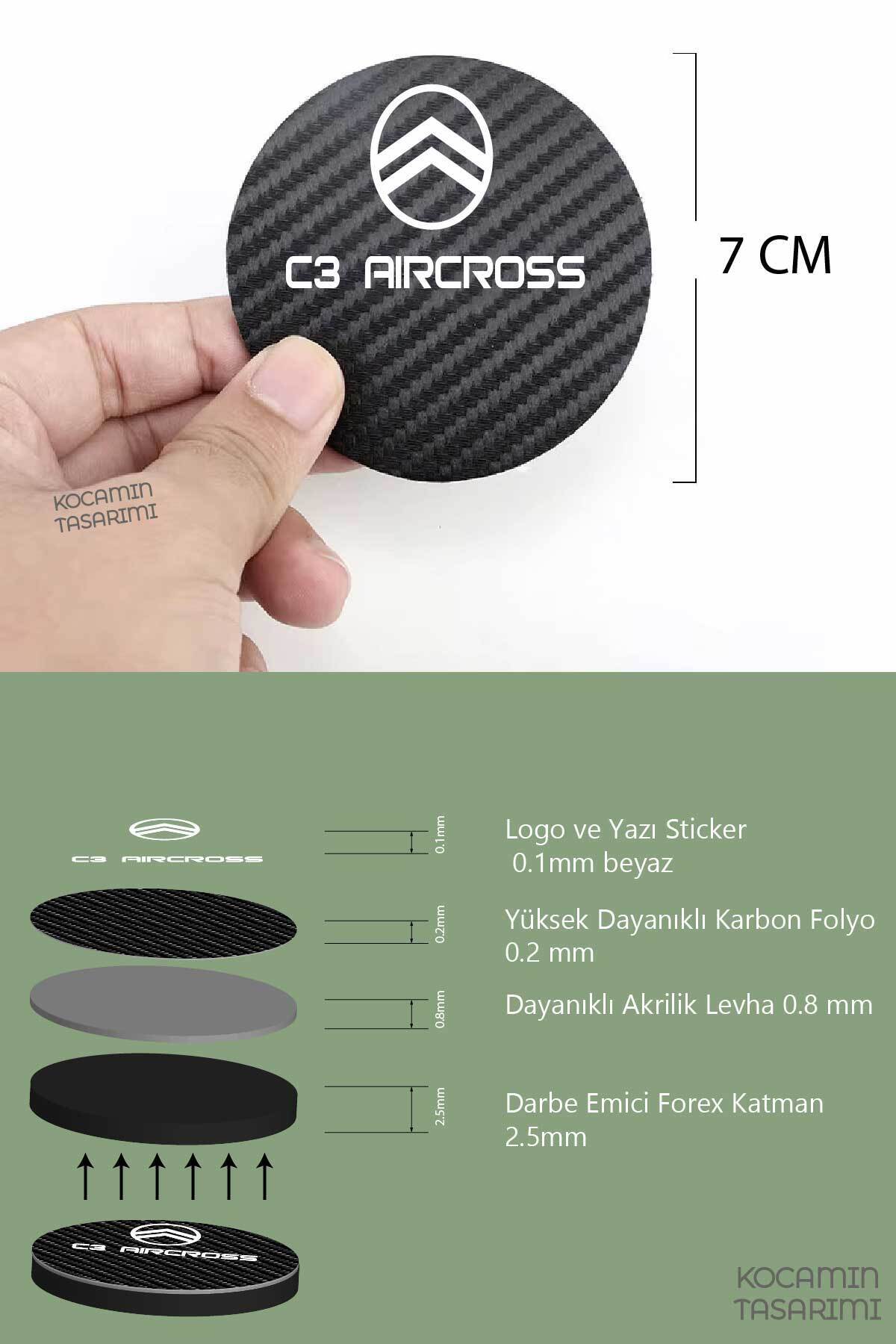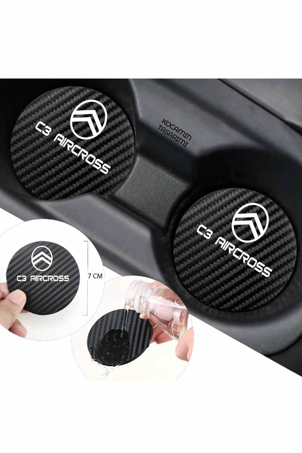 Citroen C3 Aircross Siyah Karbon 7 cm Bardak Altlığı Citroen C3 Aircross Özel Dayanıklı ve Şık Tasar