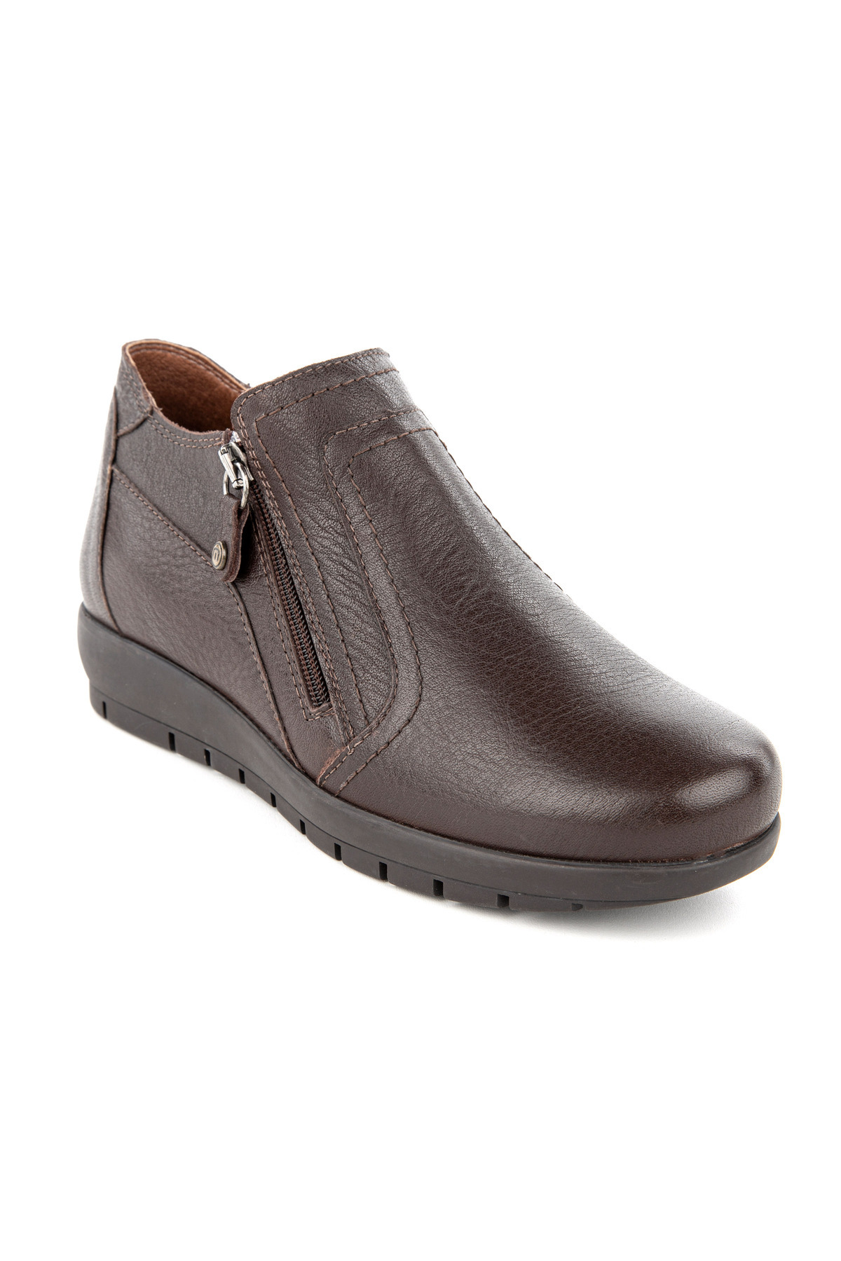 Abelia 6 Nokta Anatomik Taban Hakiki Deri Fermuarlı Kadın Bot Bej