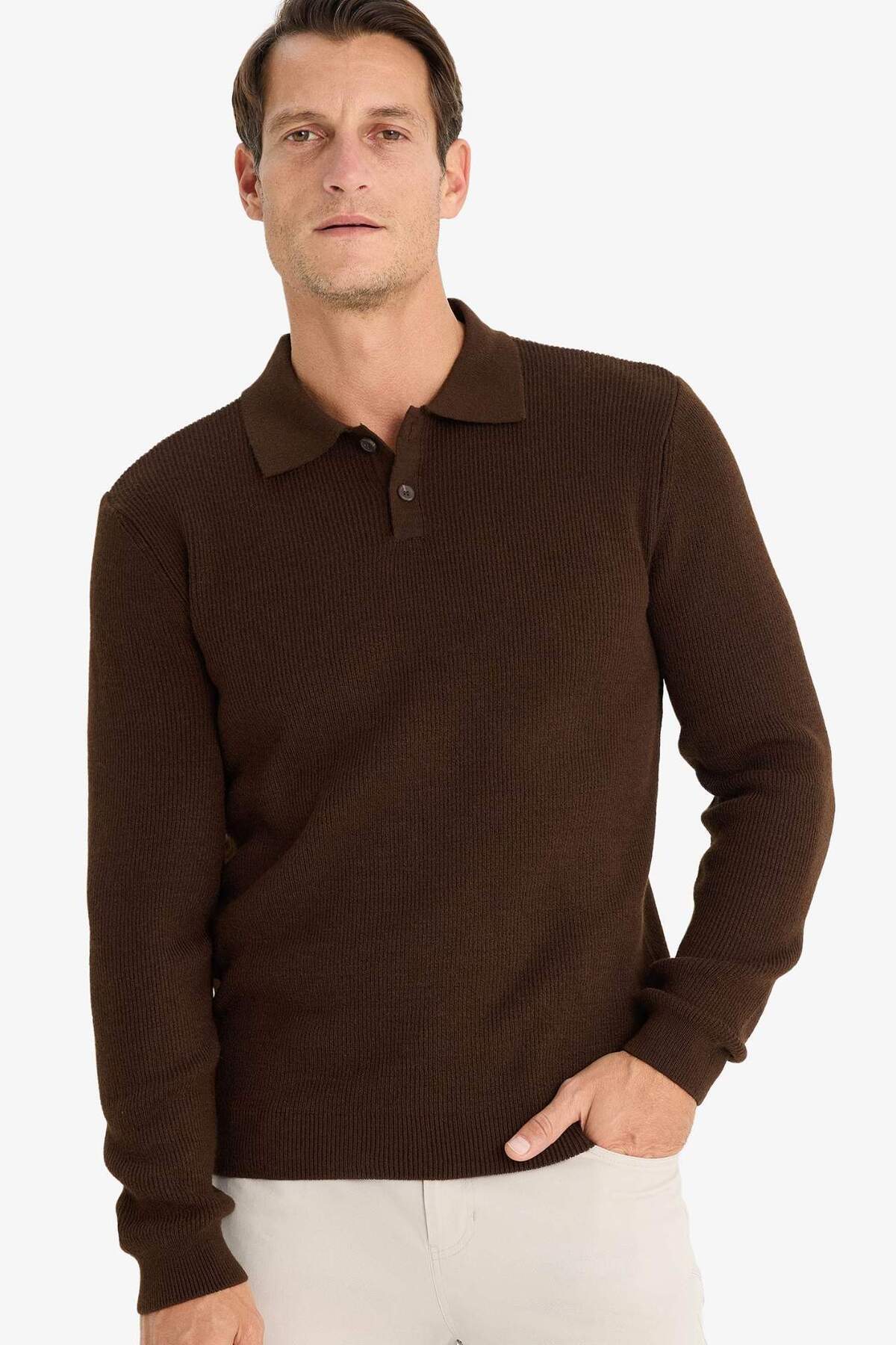Şık ve rahat bir seçenek olan Standart Fit Polo Yaka Triko Kazak, gardırobunuzun vazgeçilmezi olmaya aday.