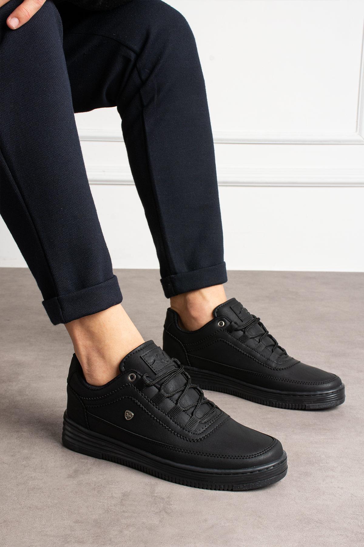 - Rahat kalıbıyla günlük kullanım için ideal, erkek siyah sneaker.