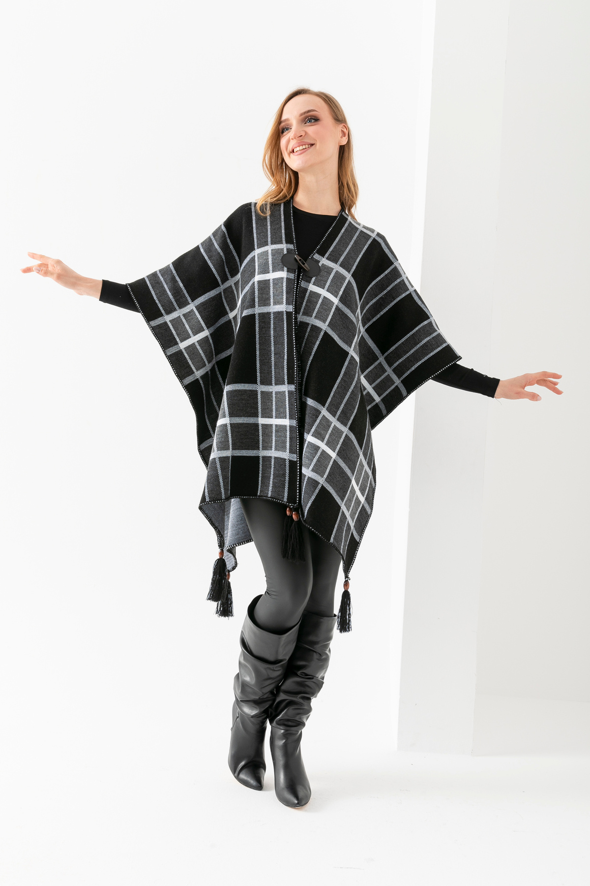 - Modern ve şık tasarımıyla dikkat çeken çizgili desenli panço, günlük kullanım için idealdir.