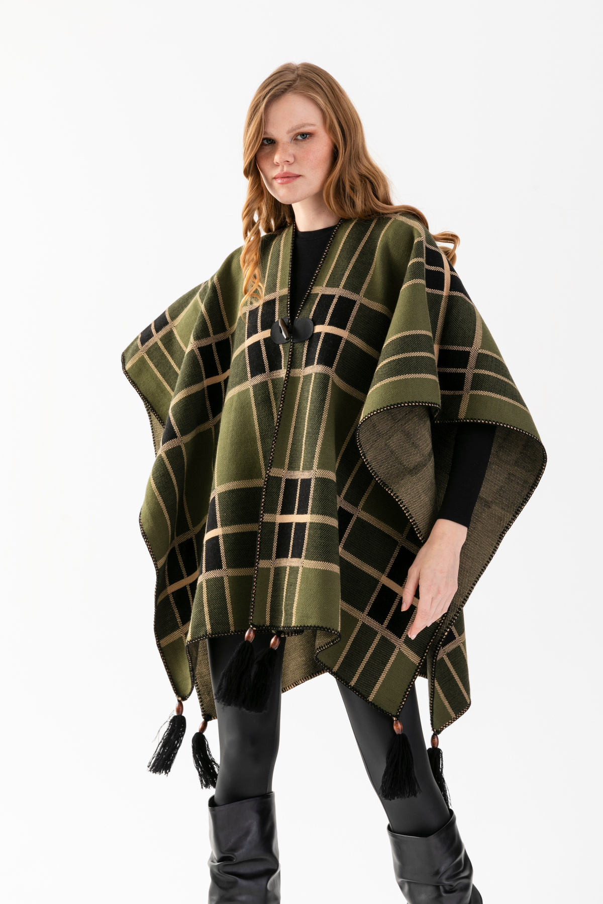 - Modern ve şık tasarımıyla dikkat çeken çizgili desenli panço, günlük kullanım için idealdir.
