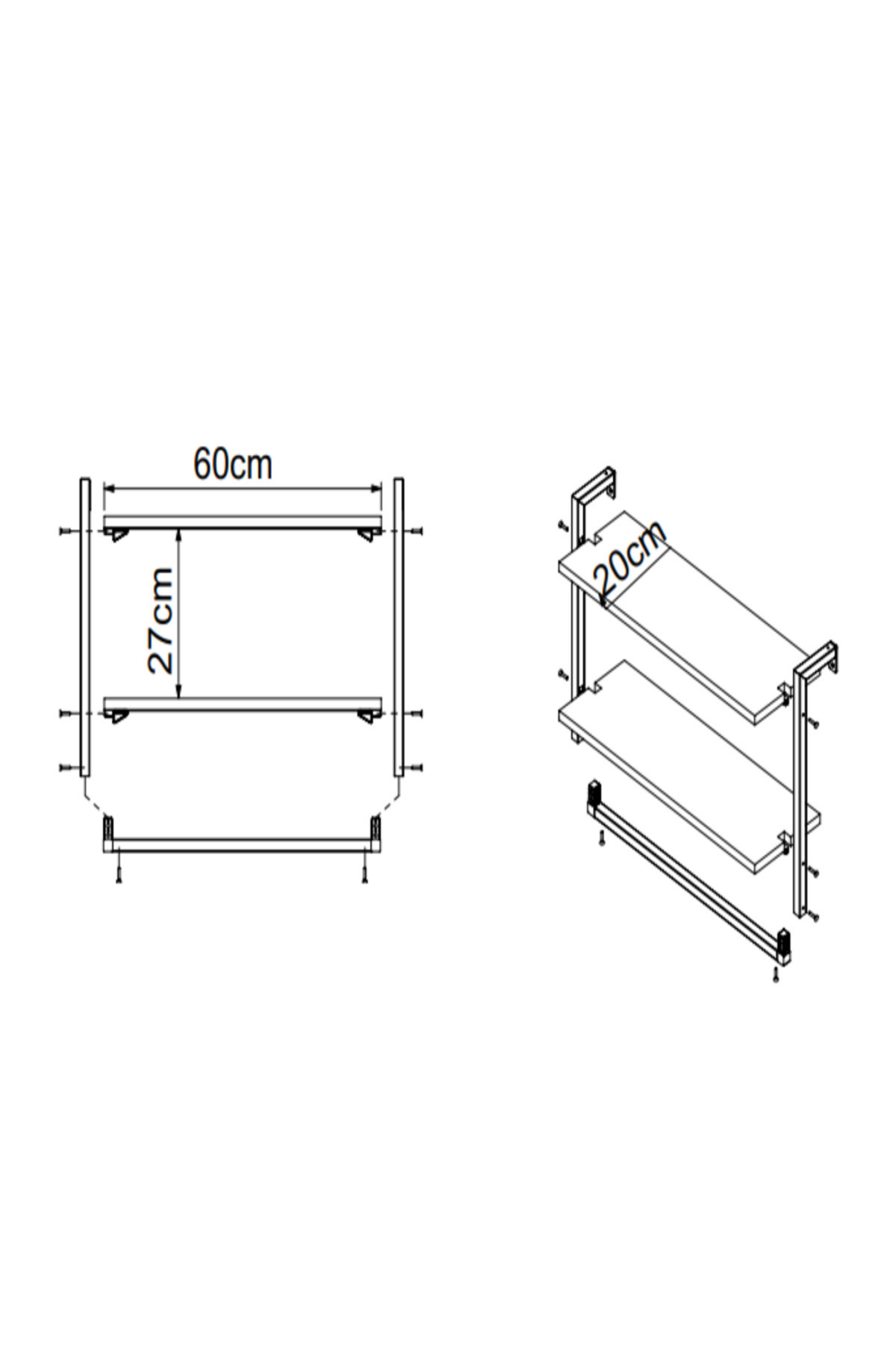 - Modern tasarımıyla banyonuza şıklık katan 60x20 cm boyutlarında duvara monte havluluk, hem fonksiyonel hem de dekoratif bir kullanım sunar.